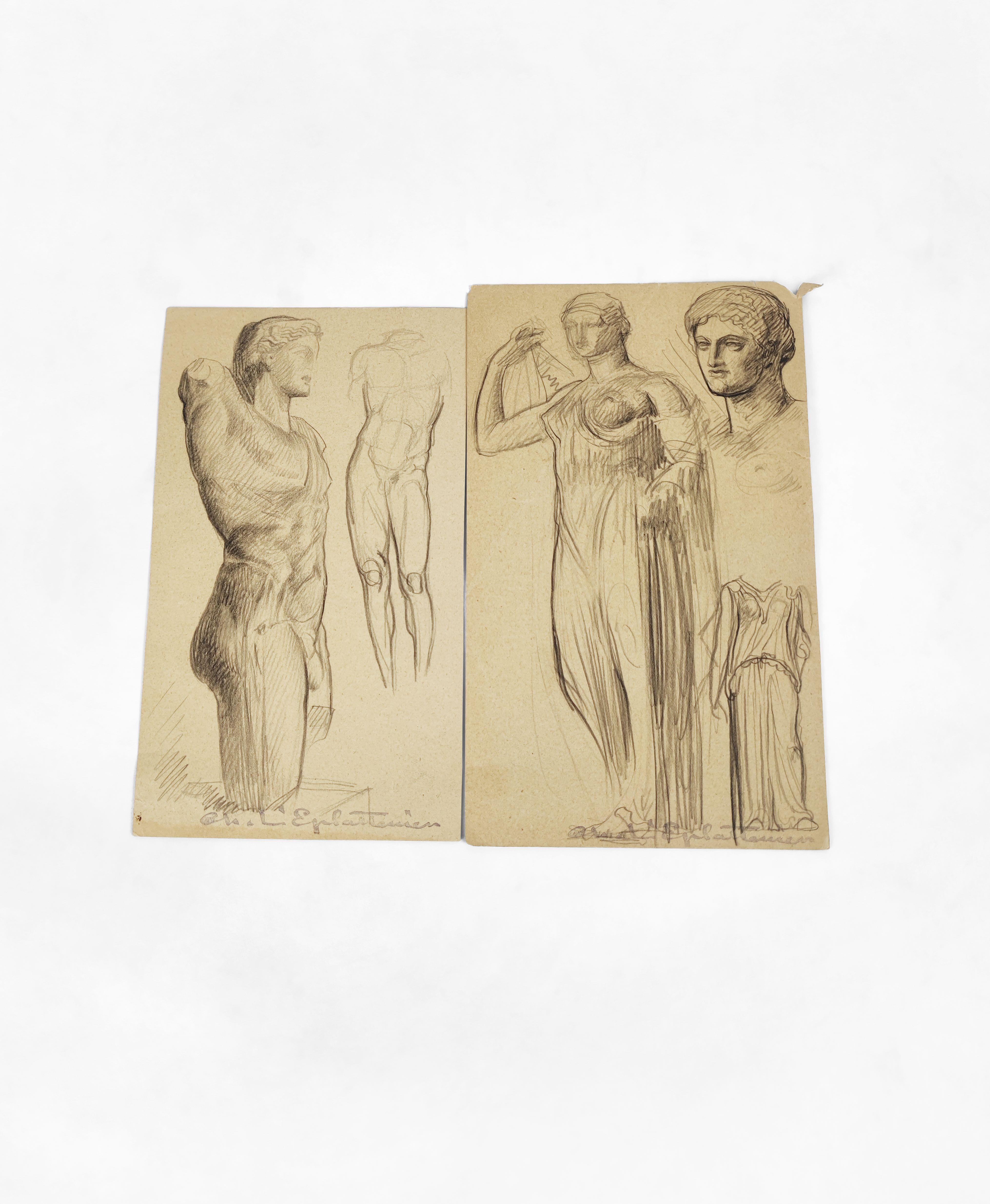 Deux études de statues classiques, dessins, tampon de la signature, 20x13 et 22x12 cm