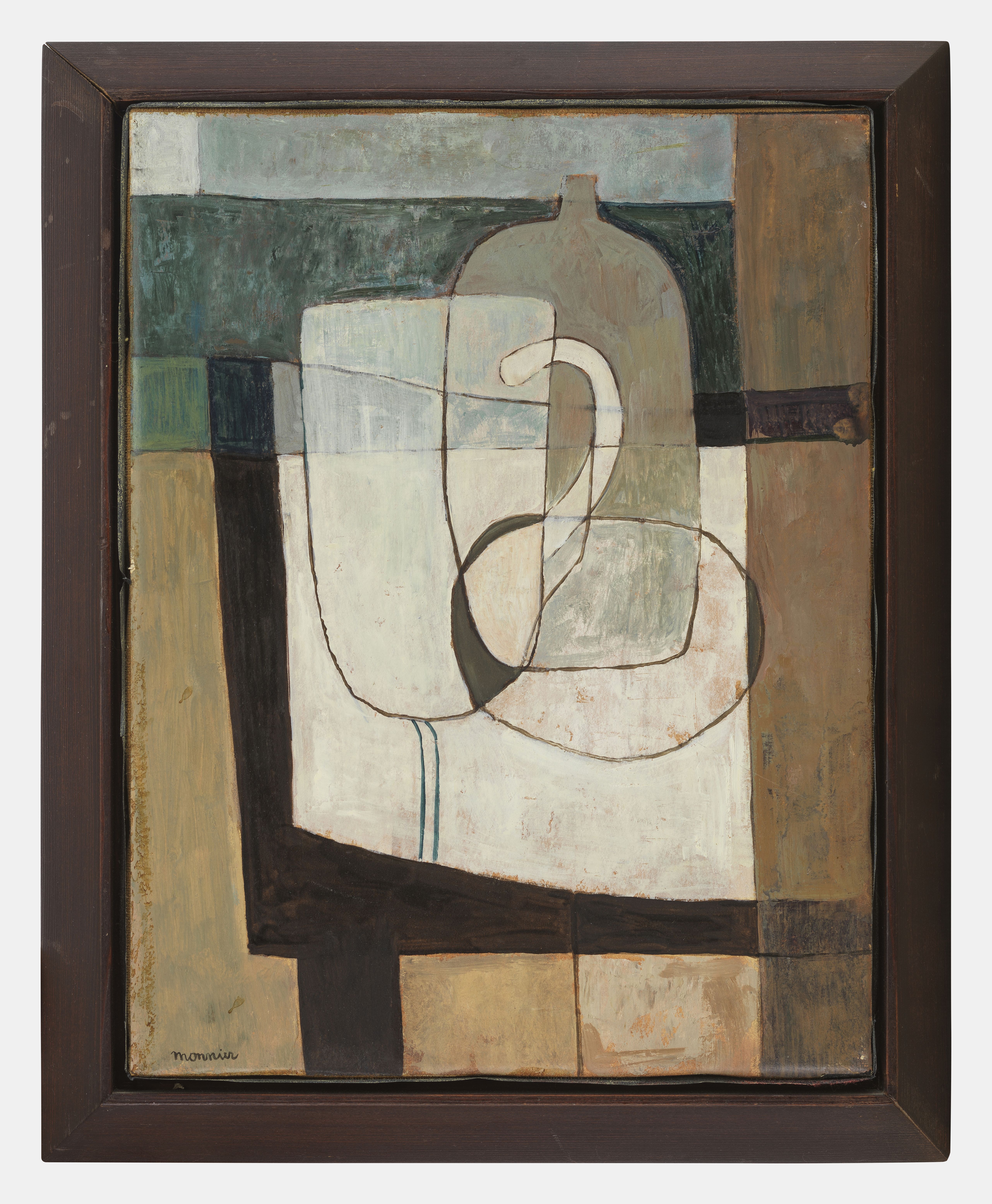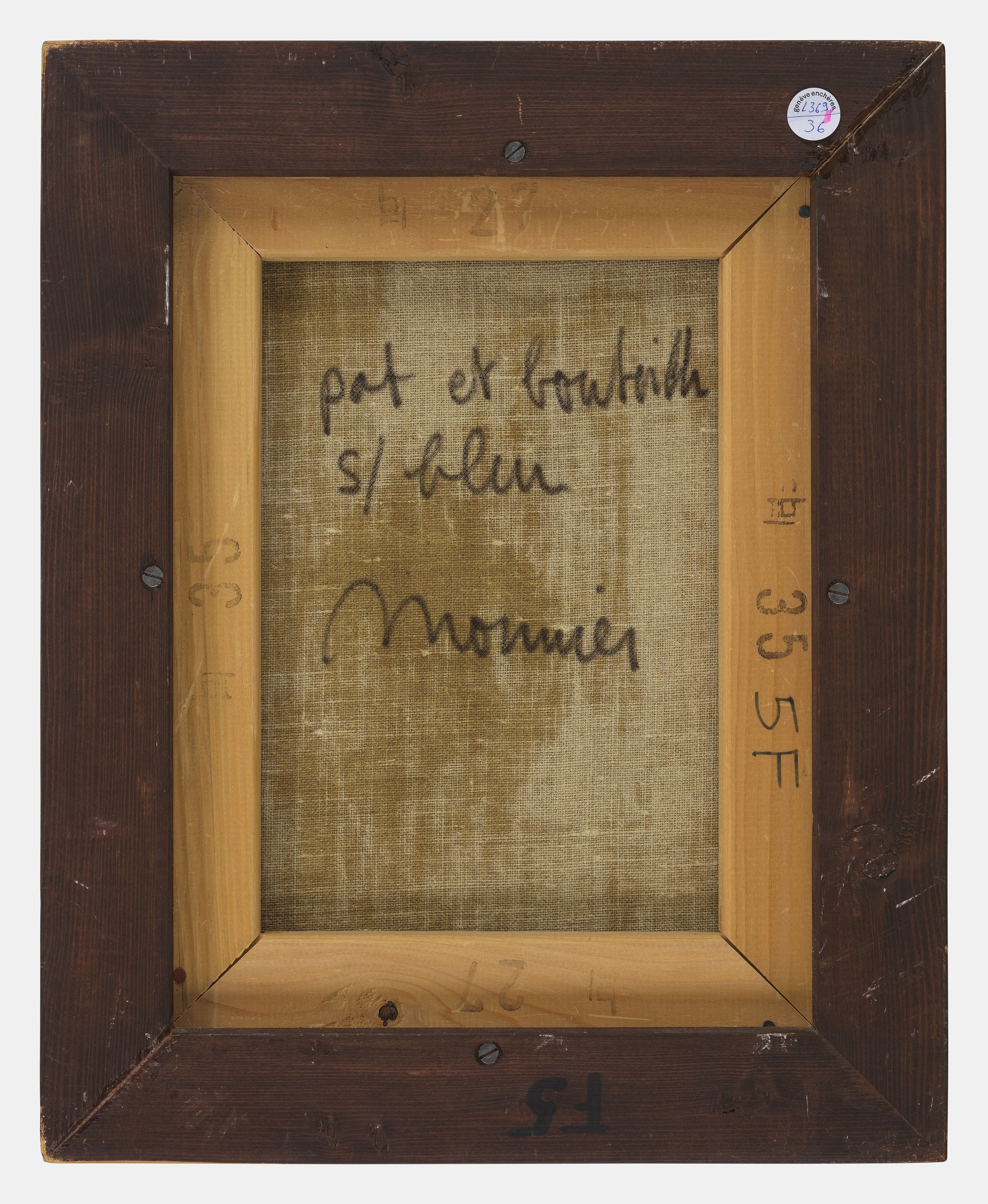 Pot et bouteille, huile sur toile, signée et titrée au dos, 35x27 cm