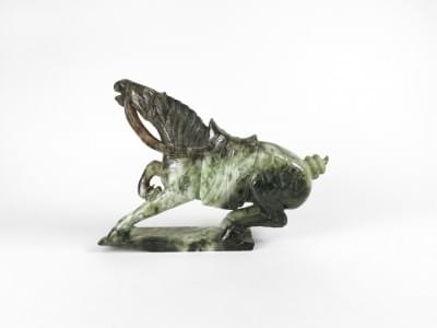 4498. Trois assiettes à décor de cheval ailé, visage et buste feminin