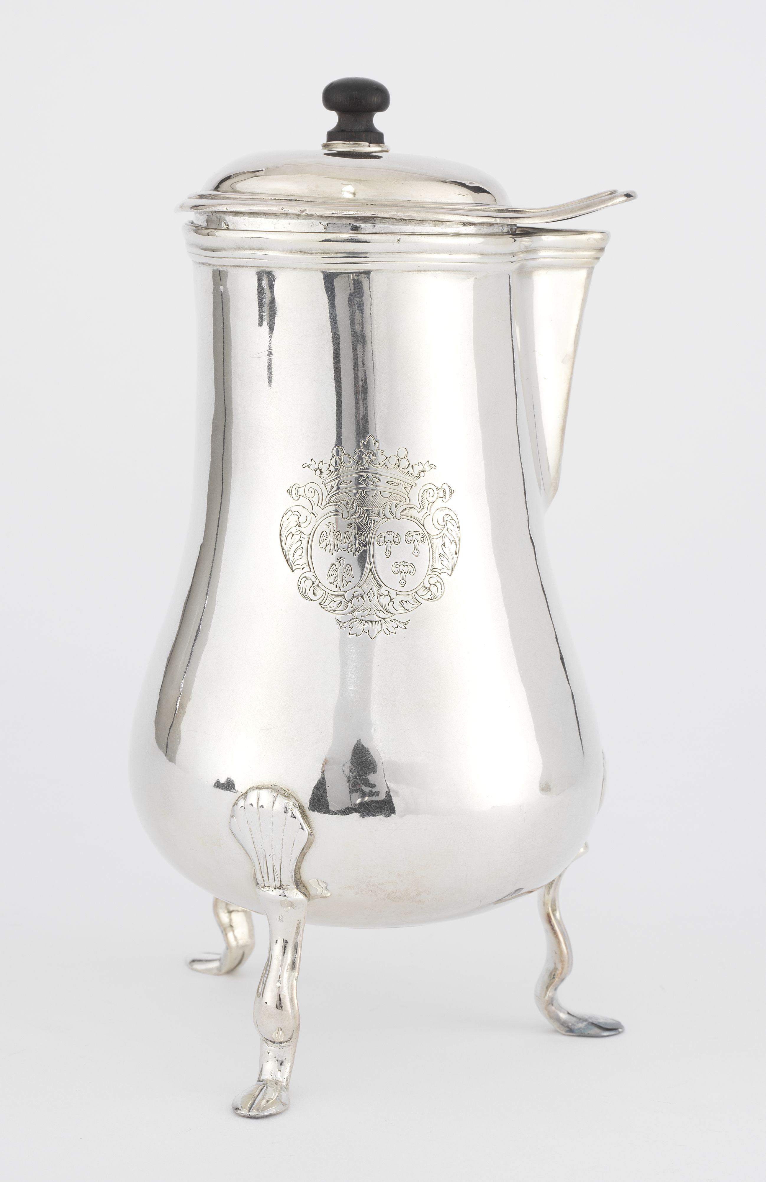 19. Chocolatière piriforme tripode d'époque Louis XIV