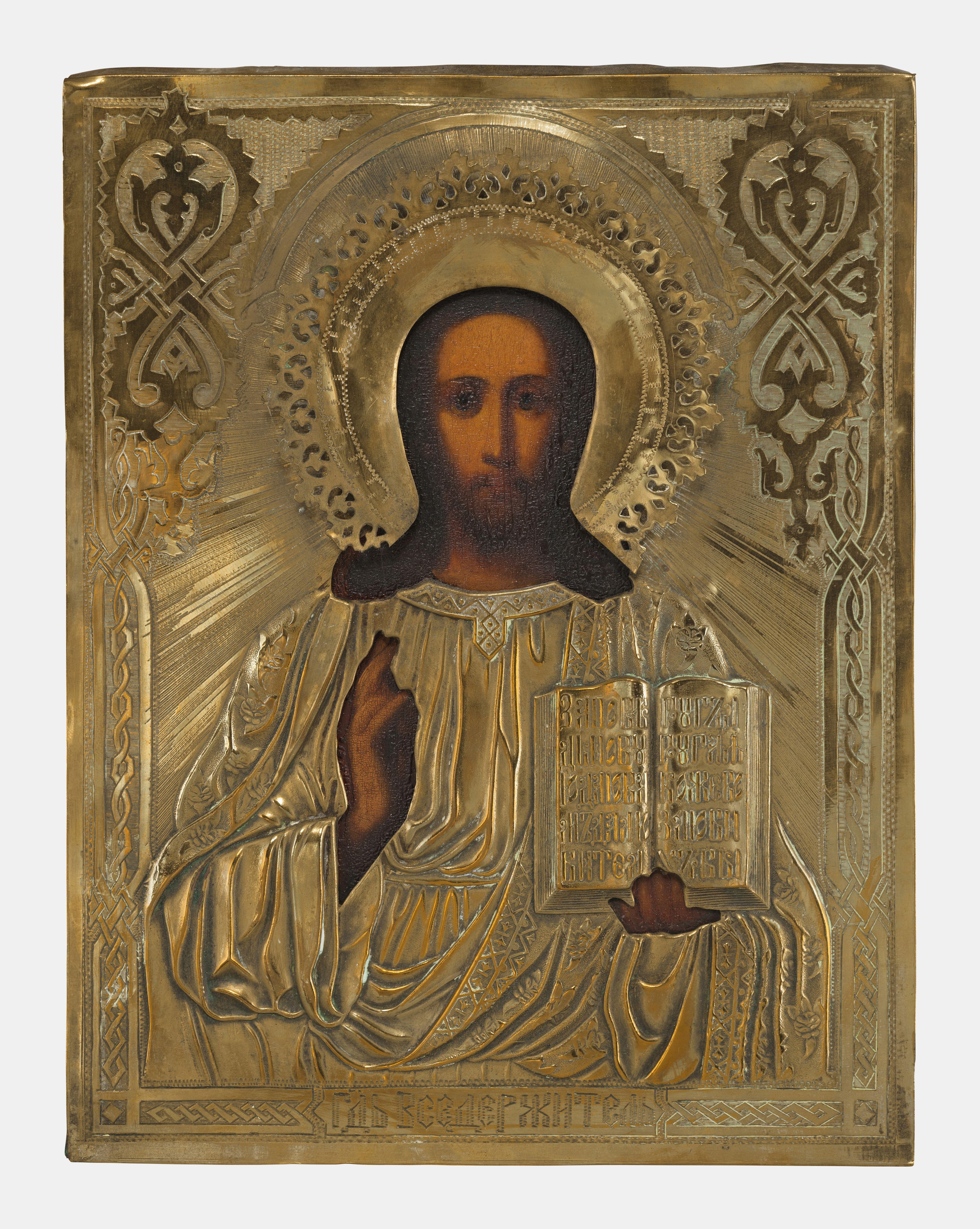 Icône, tempera sur panneau et oklade en laiton, 22x18 cm