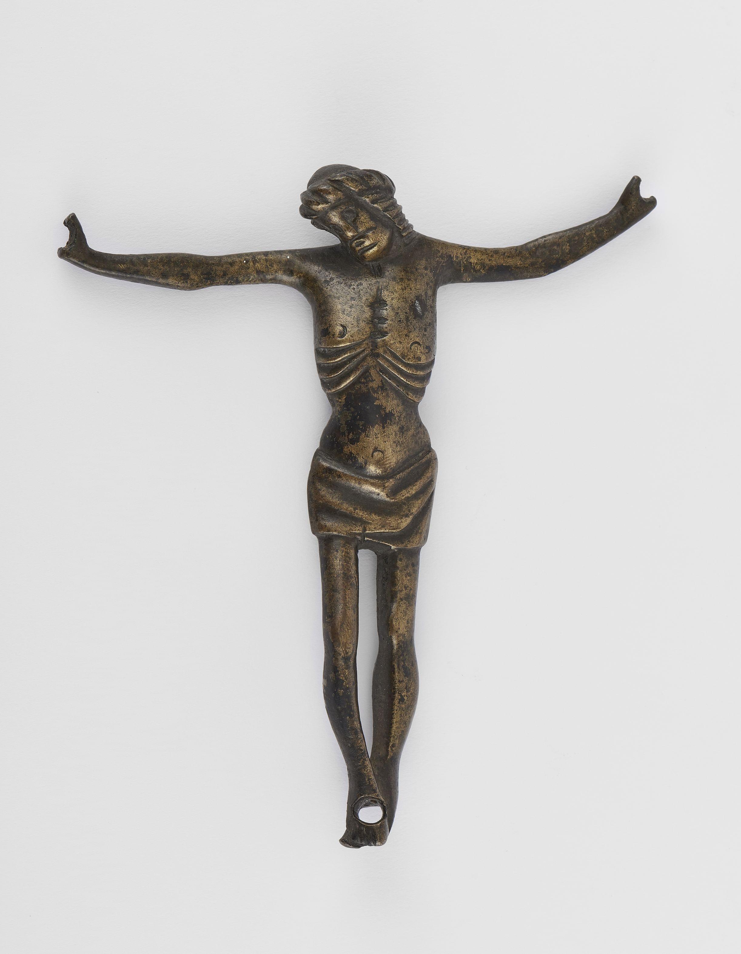 Icône quadriptyque, Russie, laiton et émaux bleus, H 18 cm