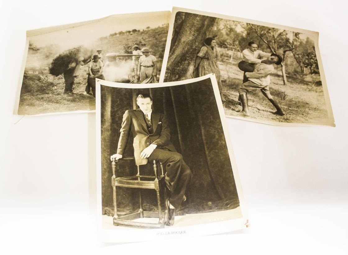 Suite de trois photographies d'acteurs et scènes de tournage, circa 1930-1940. On joint trois photographies de danseurs et danseuses étoiles, circa 1950, de 24x18 à 30x24cm.