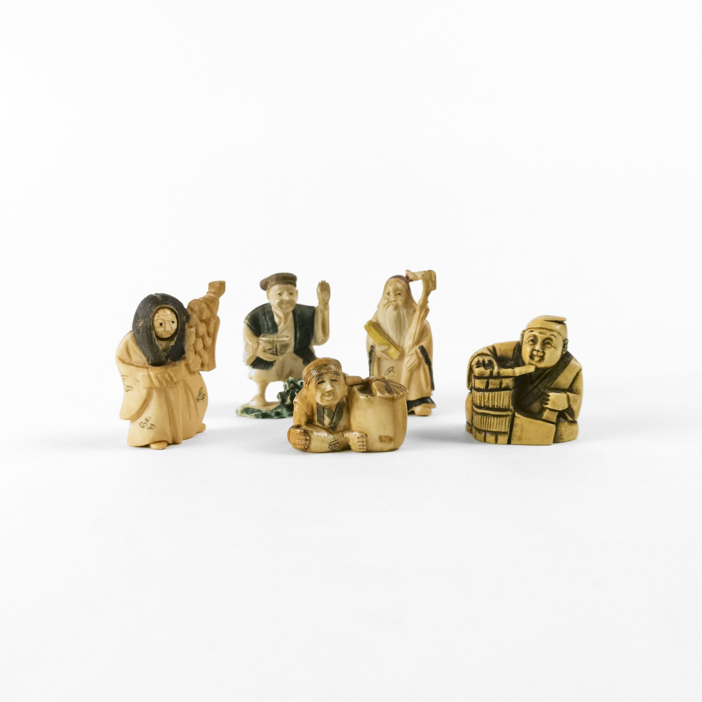 4924. Cinq netsuke figurant des personnages, Japon, circa 1900