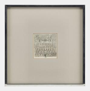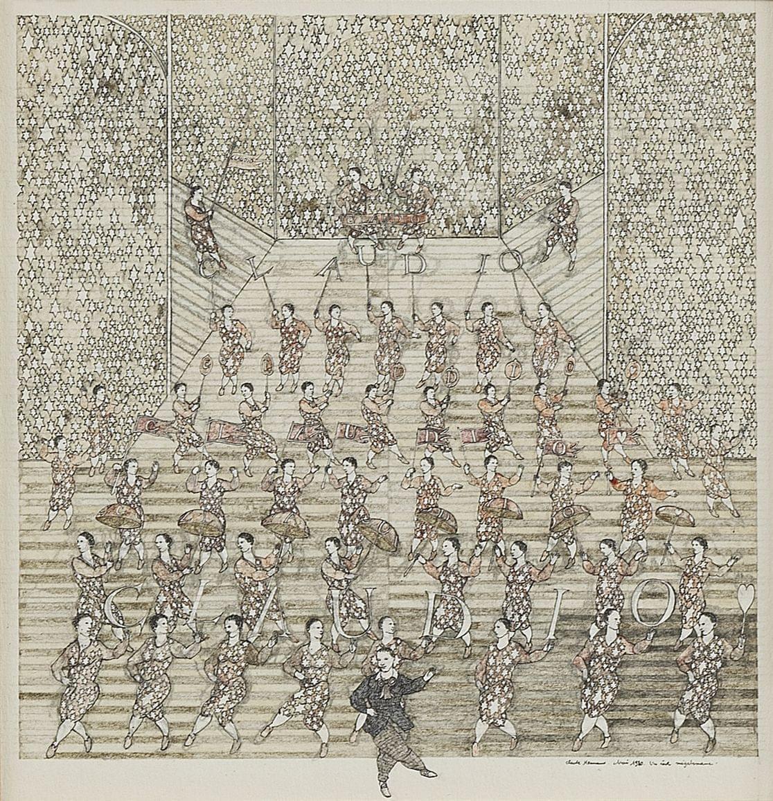 Un rêve mégalomane, encre et aquarelle, daté 1980, 10x10 cm