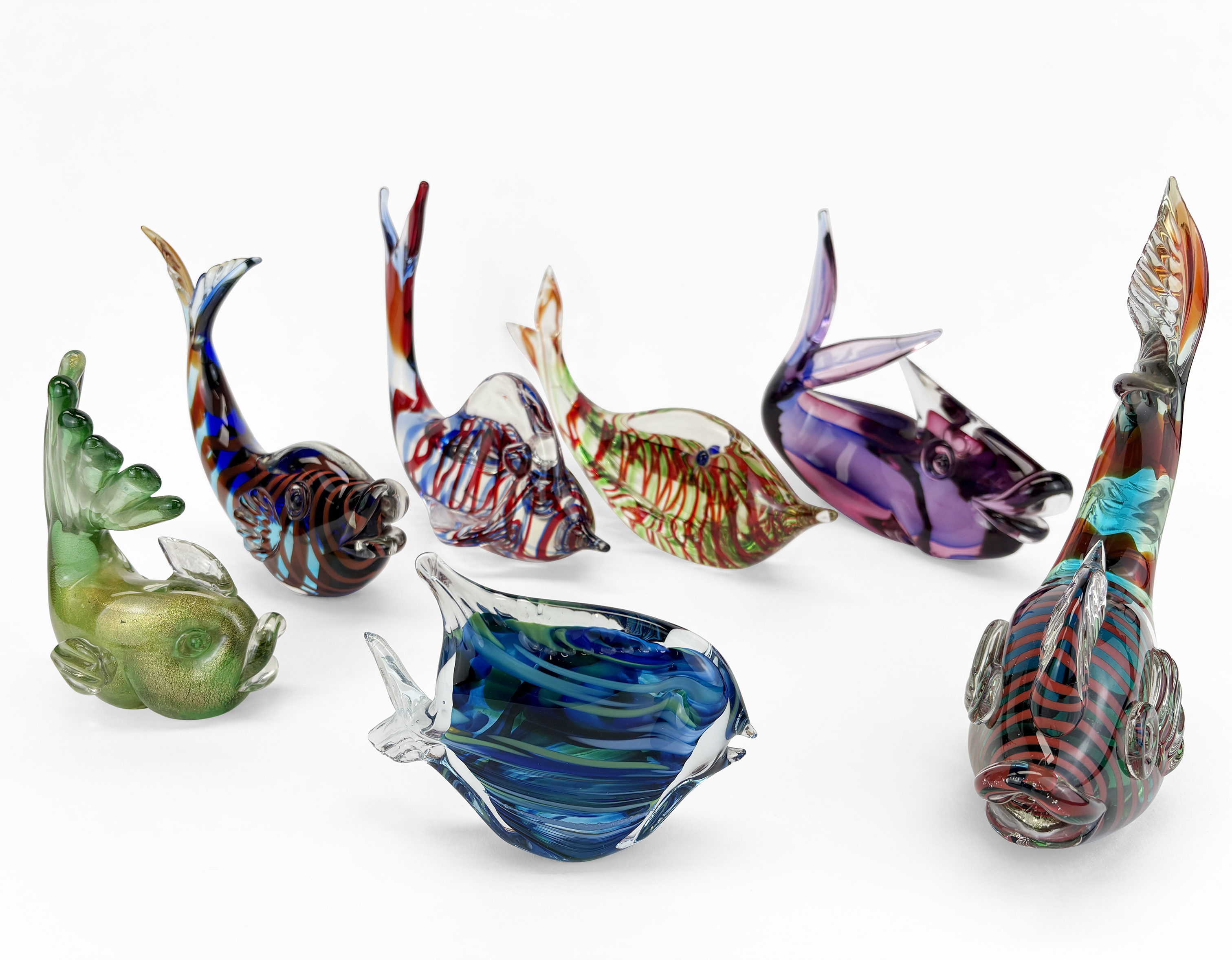 3887. Ensemble de sept poissons stylisés dans le goût de Murano