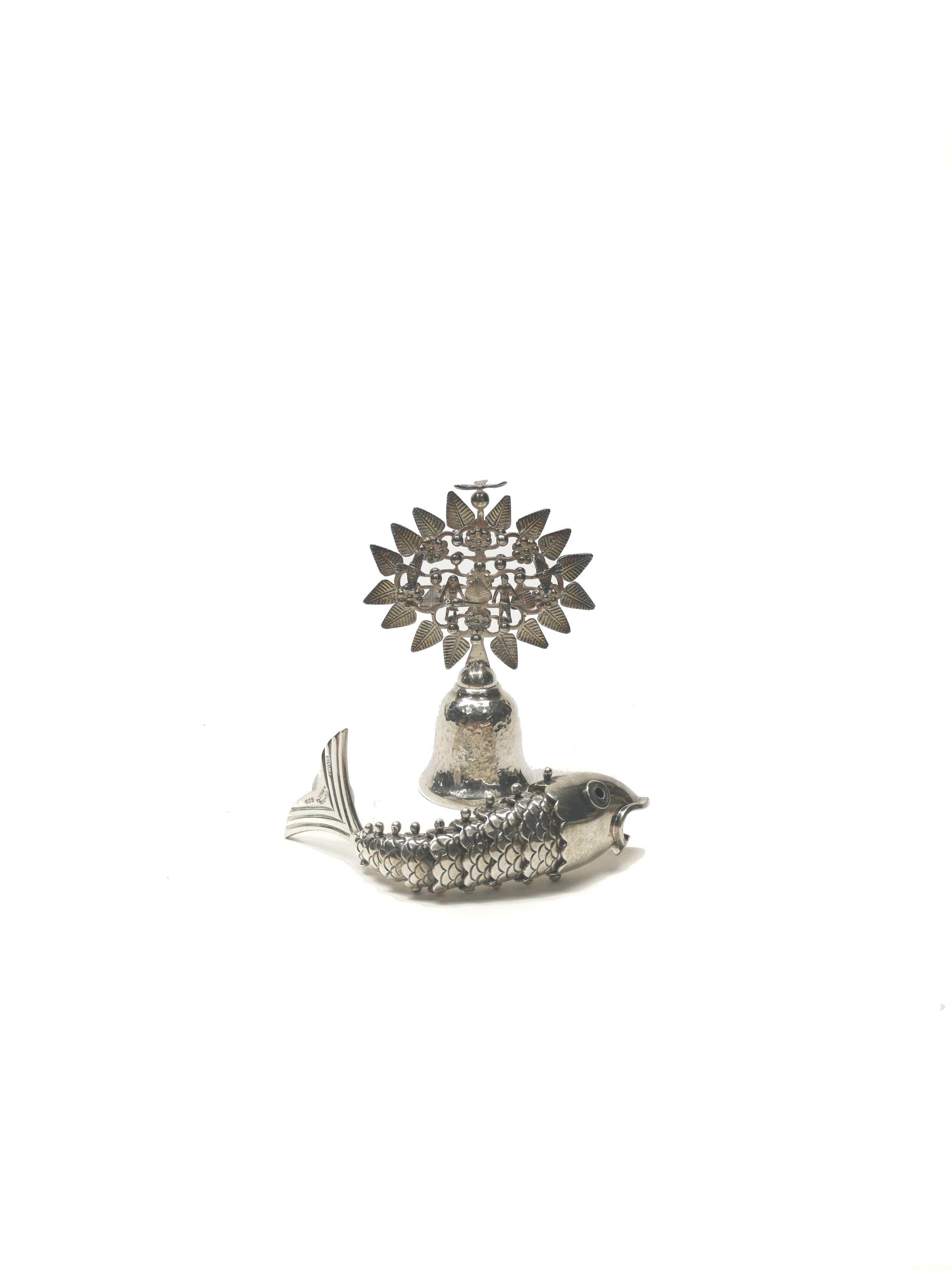 3186. Broche à motif de poisson ajouré à l'œil serti d'une turquoise