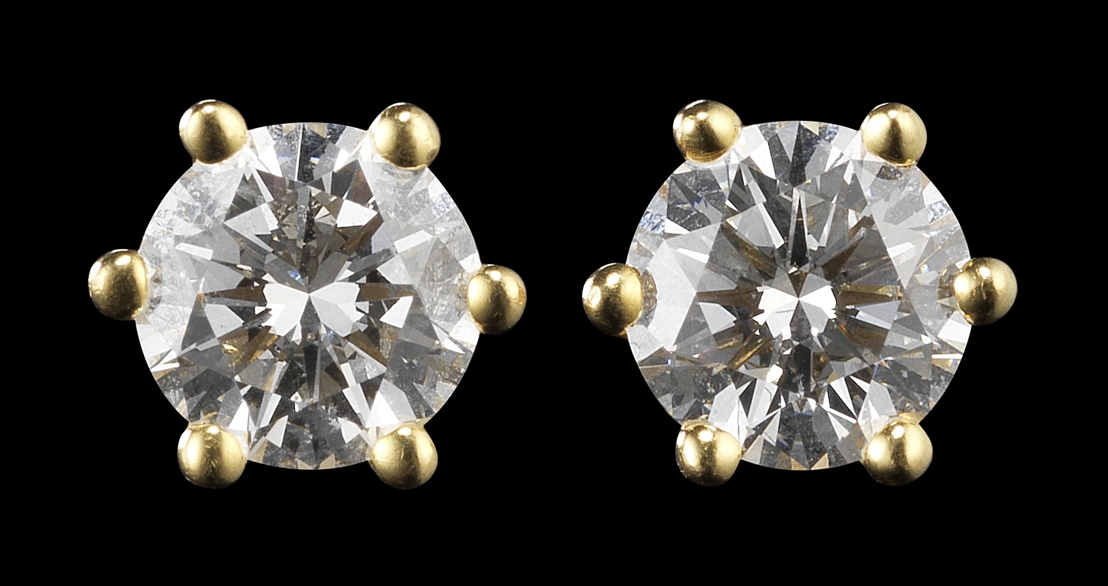 mants (total 1,1 ct)Or gris 750, H 3,5 cm, 10 g, accompagnés d'u...