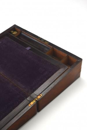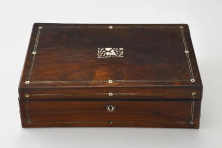 Angleterre, XIXe s, acajou, nacre et laiton, 13 x 40 x 24 cm