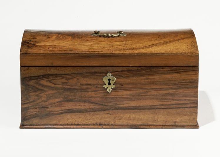 Noyer, laiton, 25x49x30 cm. Provenance: Château fribourgeois