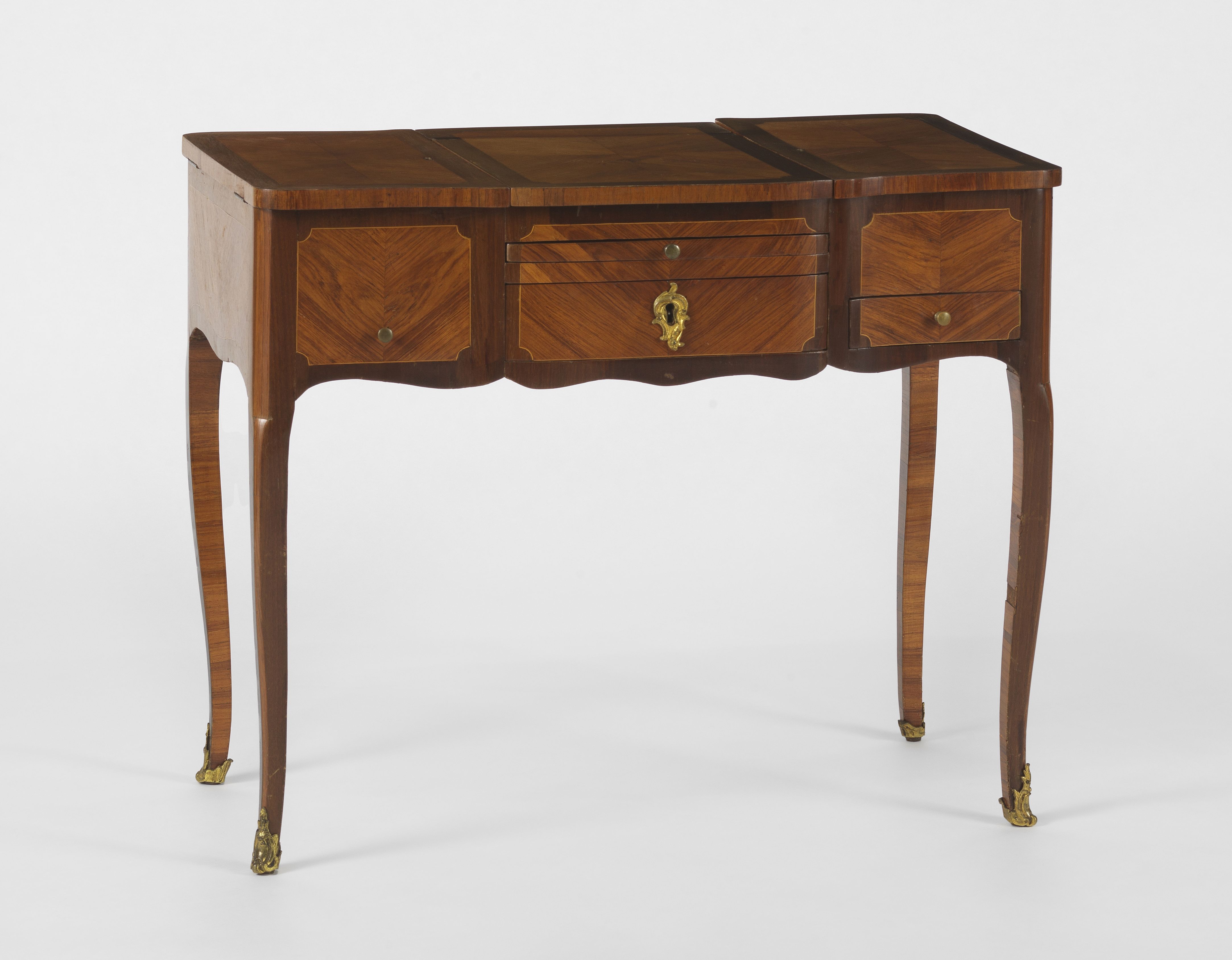 Une tablette, deux tiroirs et plateau à abattants, bois de rose et bois de violette, 68x82x48 cm. Provenance: Les Stern, une famille de collectionneurs.