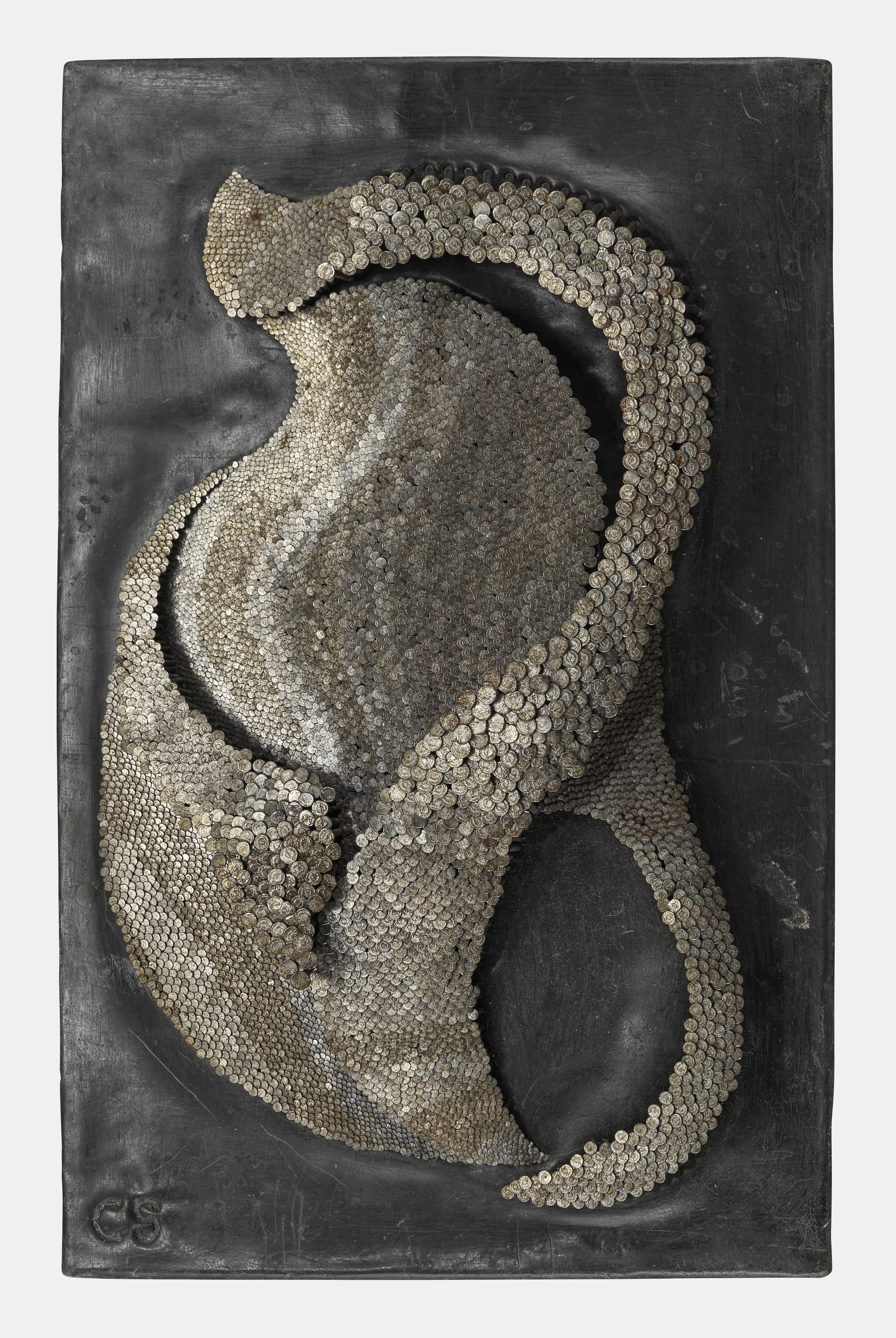 Arabesque, relief en métal, 25x40 cm