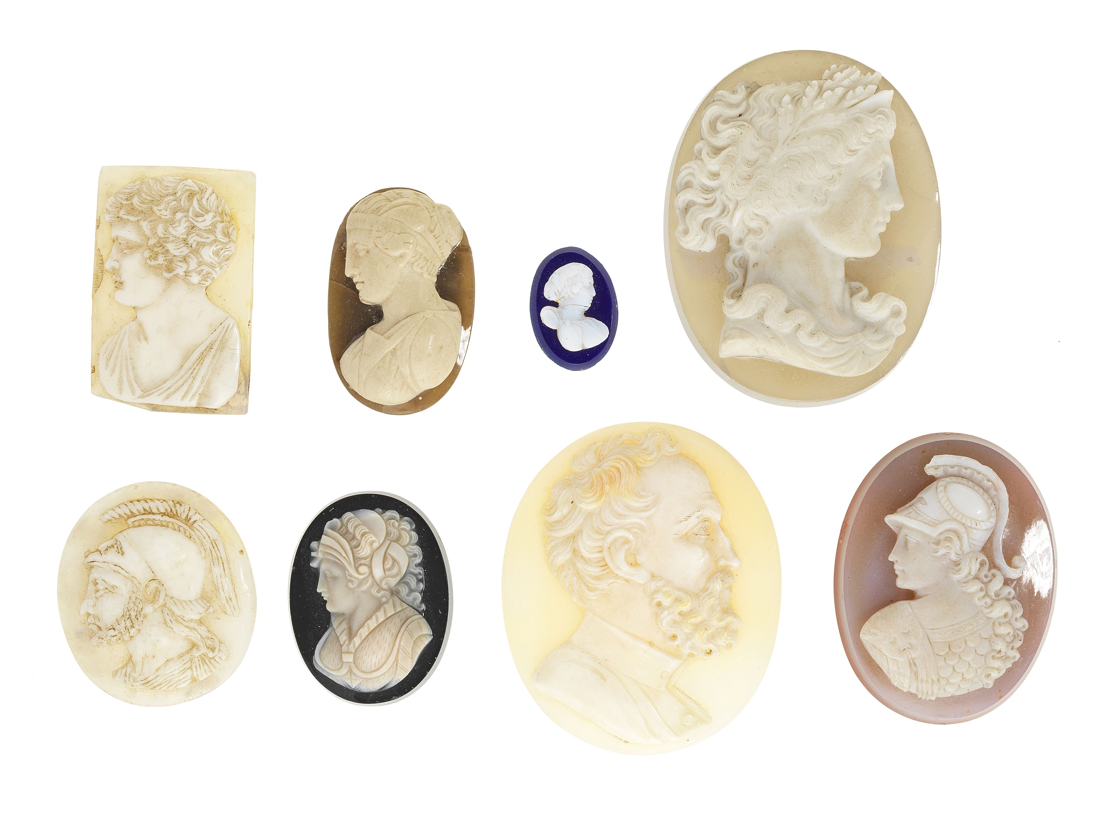 L'une sertie d'une intaille à motif de lion, les trois autres gr...