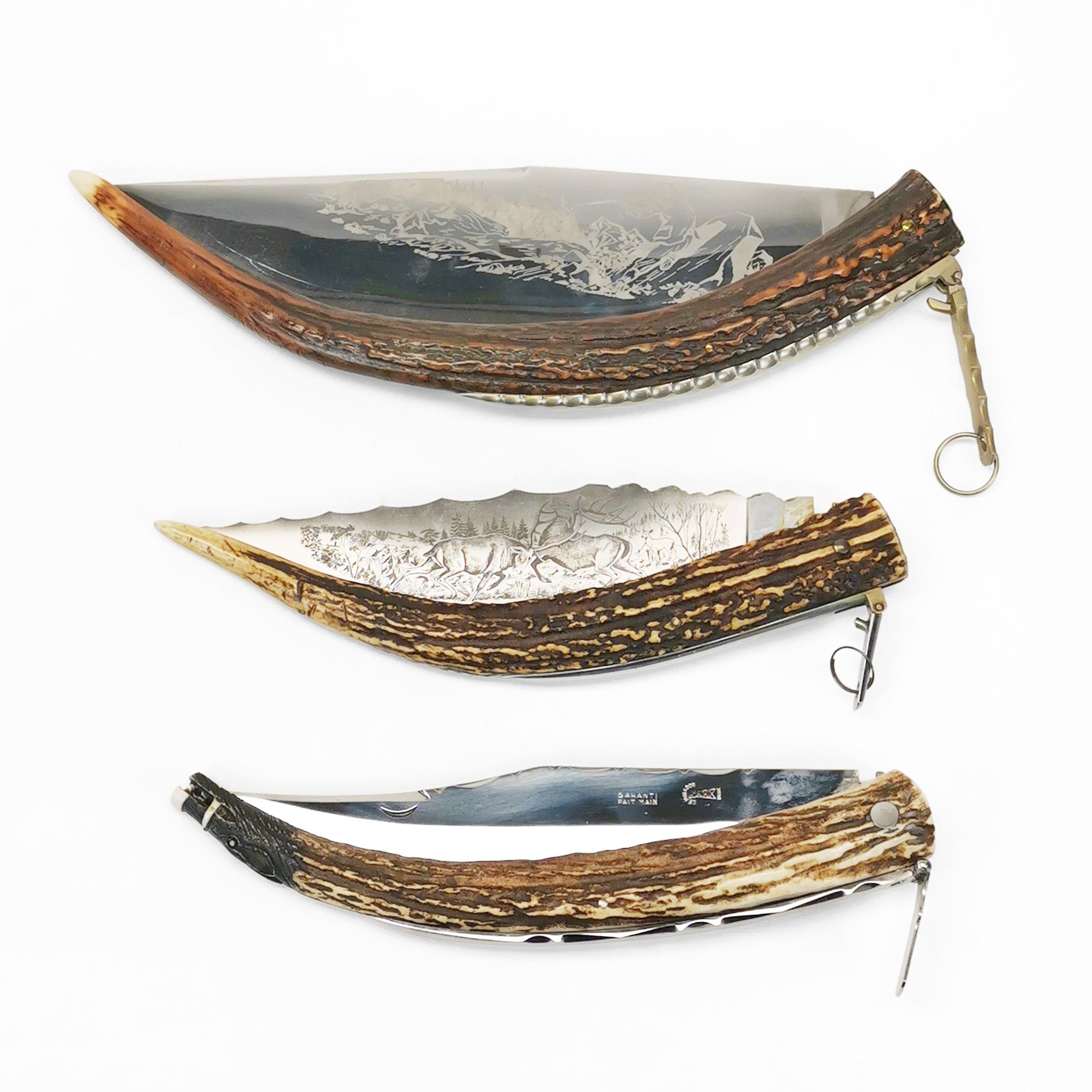 Avec le système Mongin, bois de cerf sculpté et acier gravé, L de 28 à 37 cm