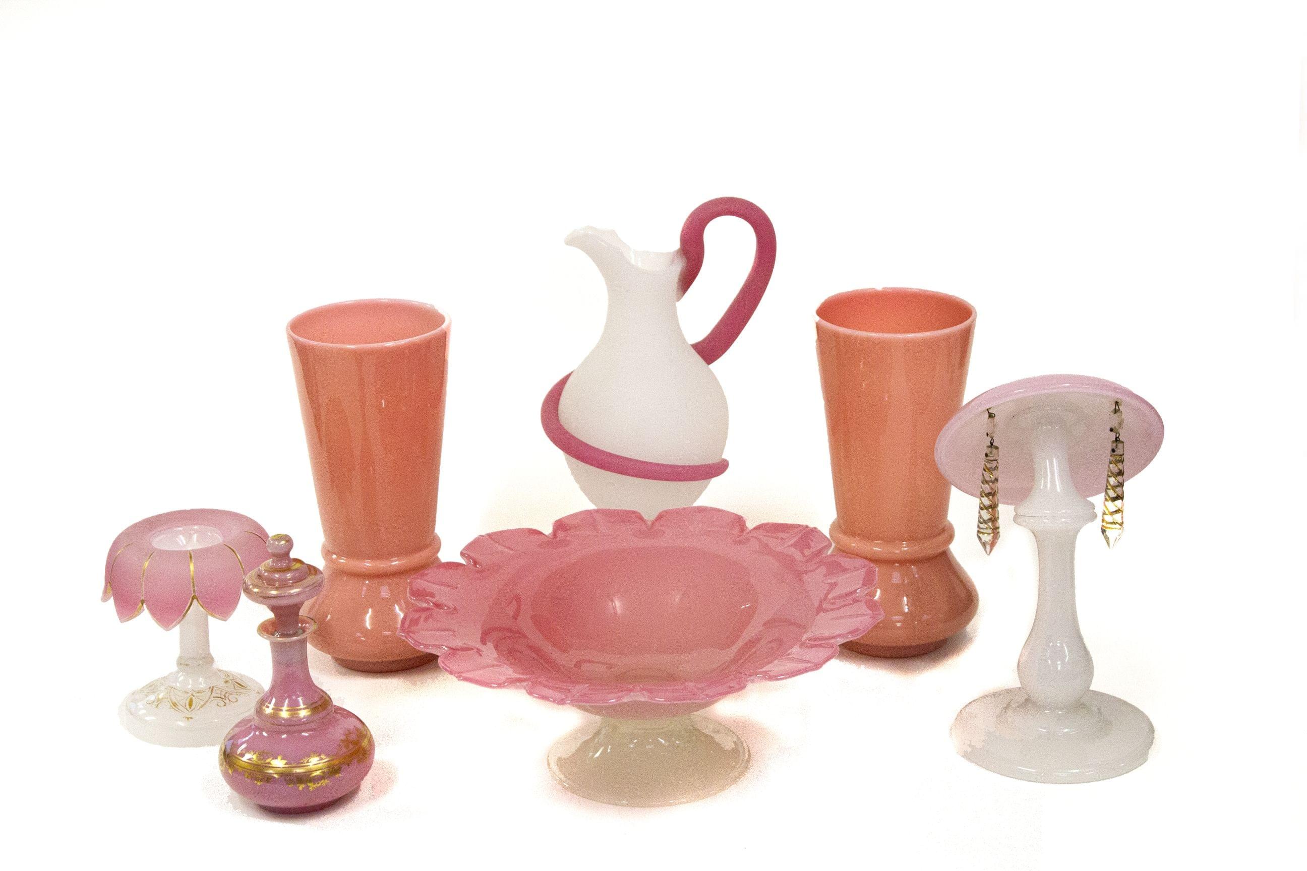 135. Pendants d'oreilles sertis de quartz rose taille cabochon entour...