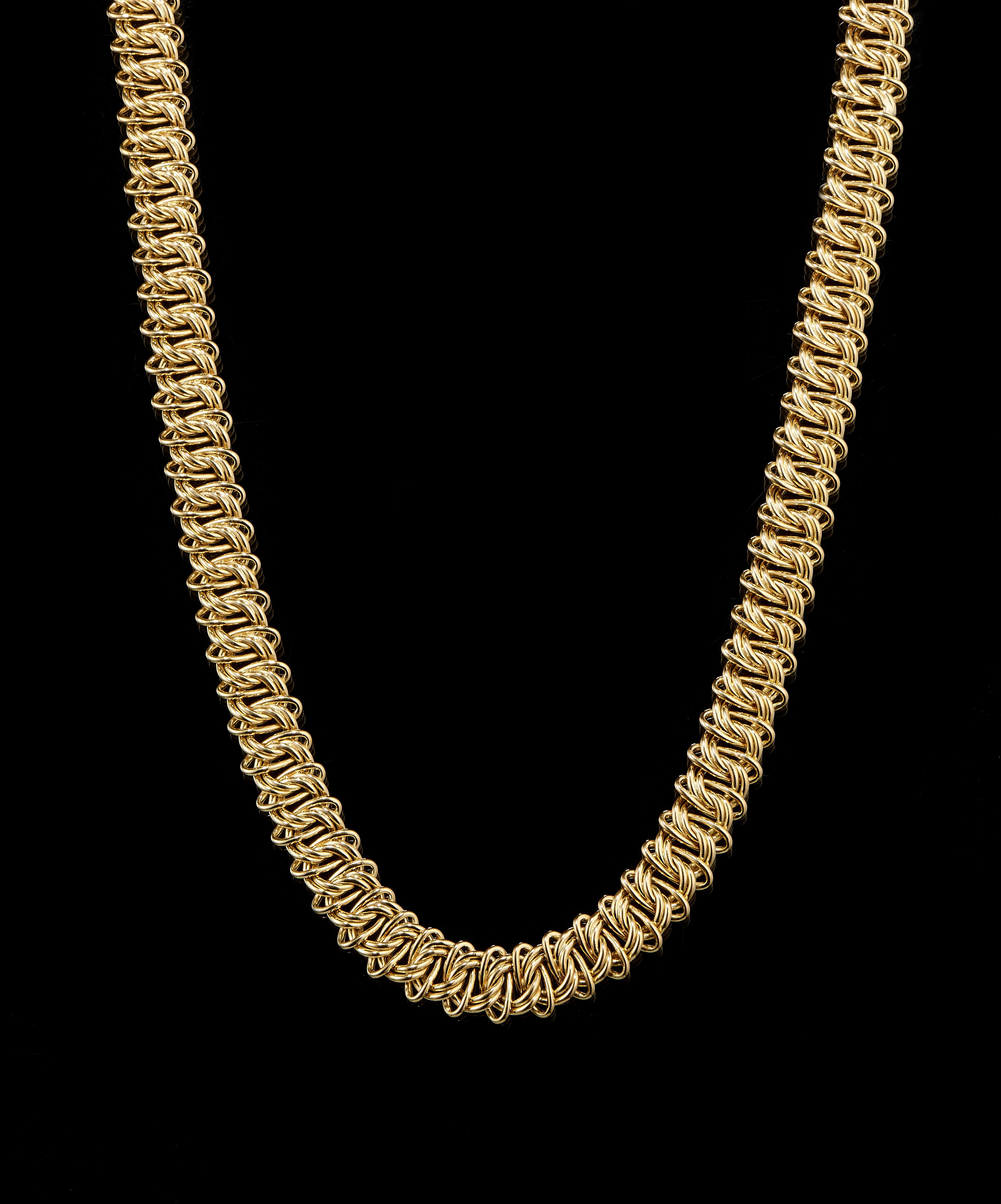 616. Bracelet manchette souple à maille fantaisie ciselée