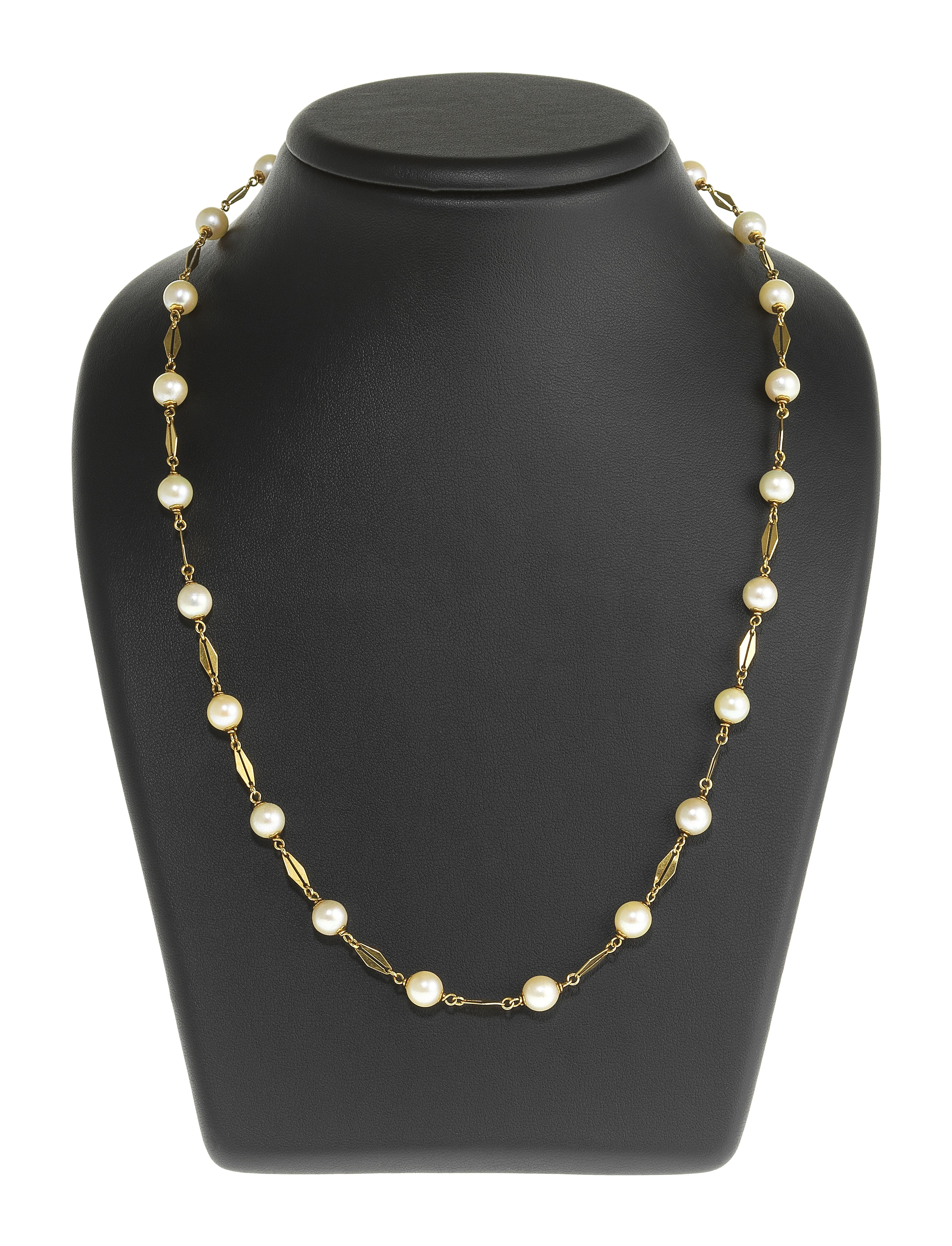 76. *Chaîne à maille torsadée retenant un pendentif serti d'une émer...