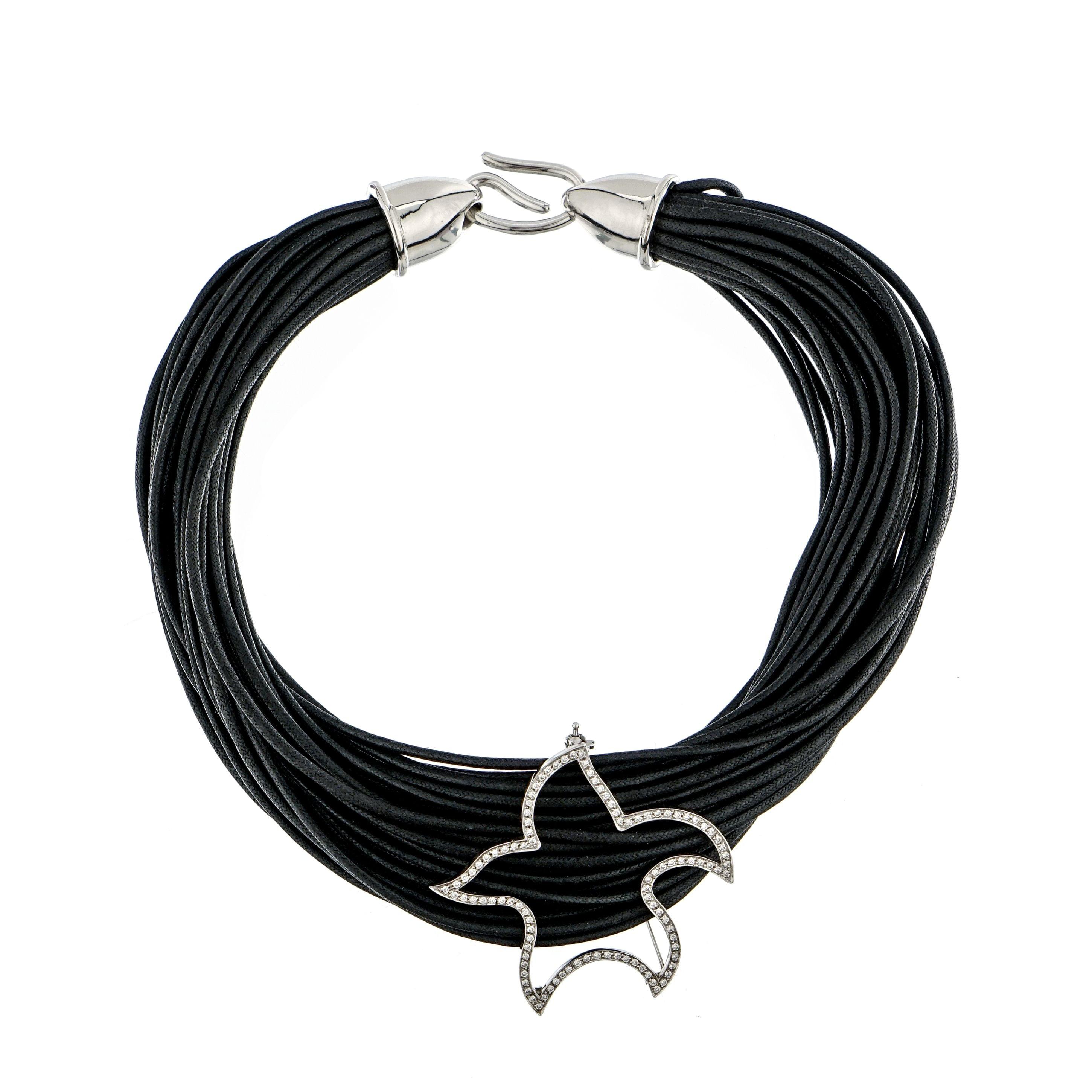 1013. Collier choker multi-rangs retenant une broche à motif d'étoile serti de diamants