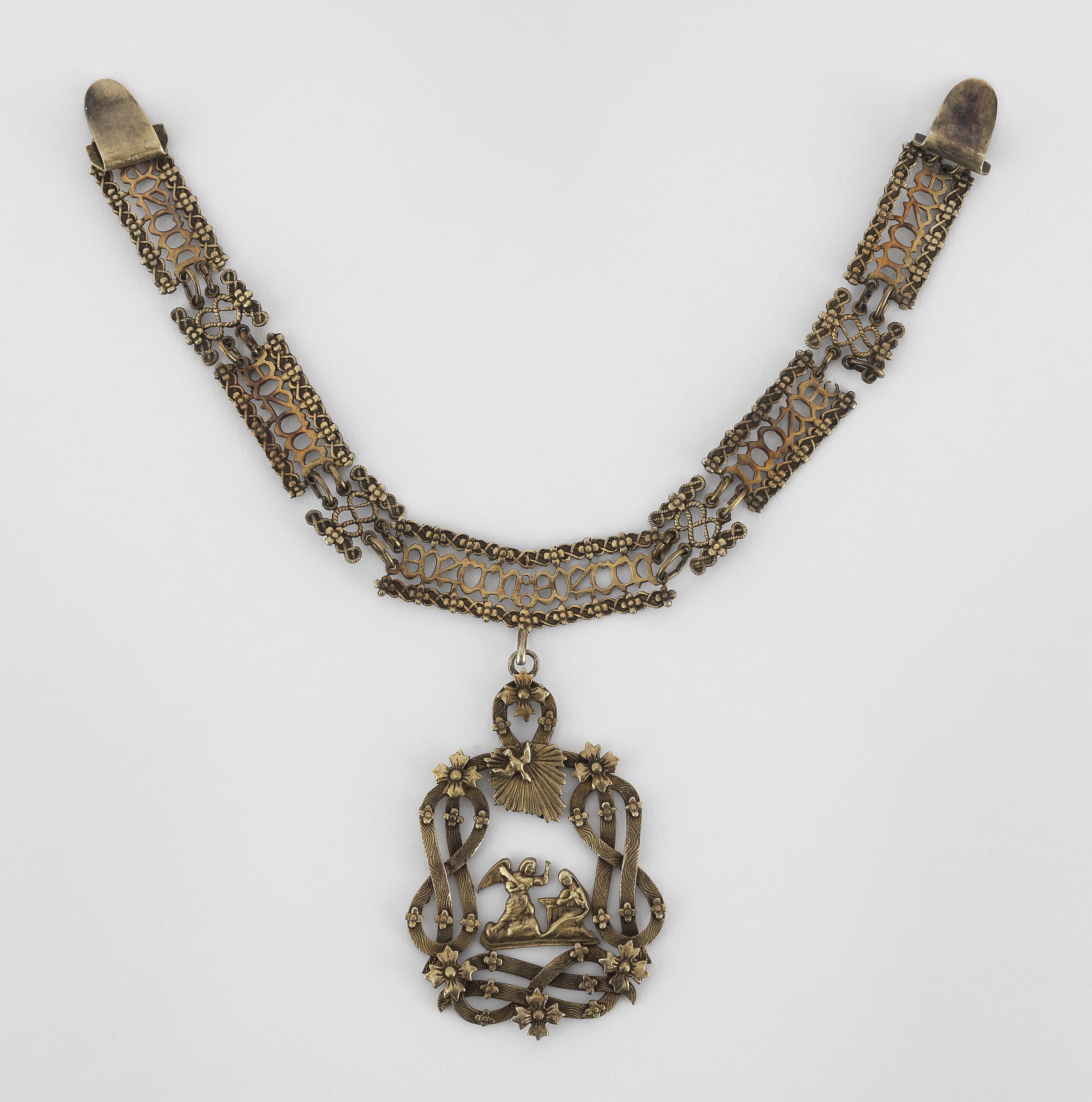 114. Gilbert Albert, collier tour de cou à maille froissée retenant e...