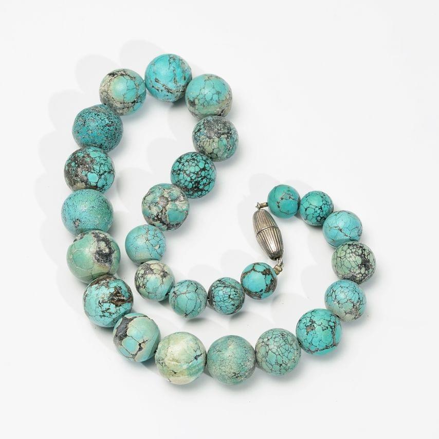 857. Saucière turquoise à décor de fleurs dans un médaillon en réserv...