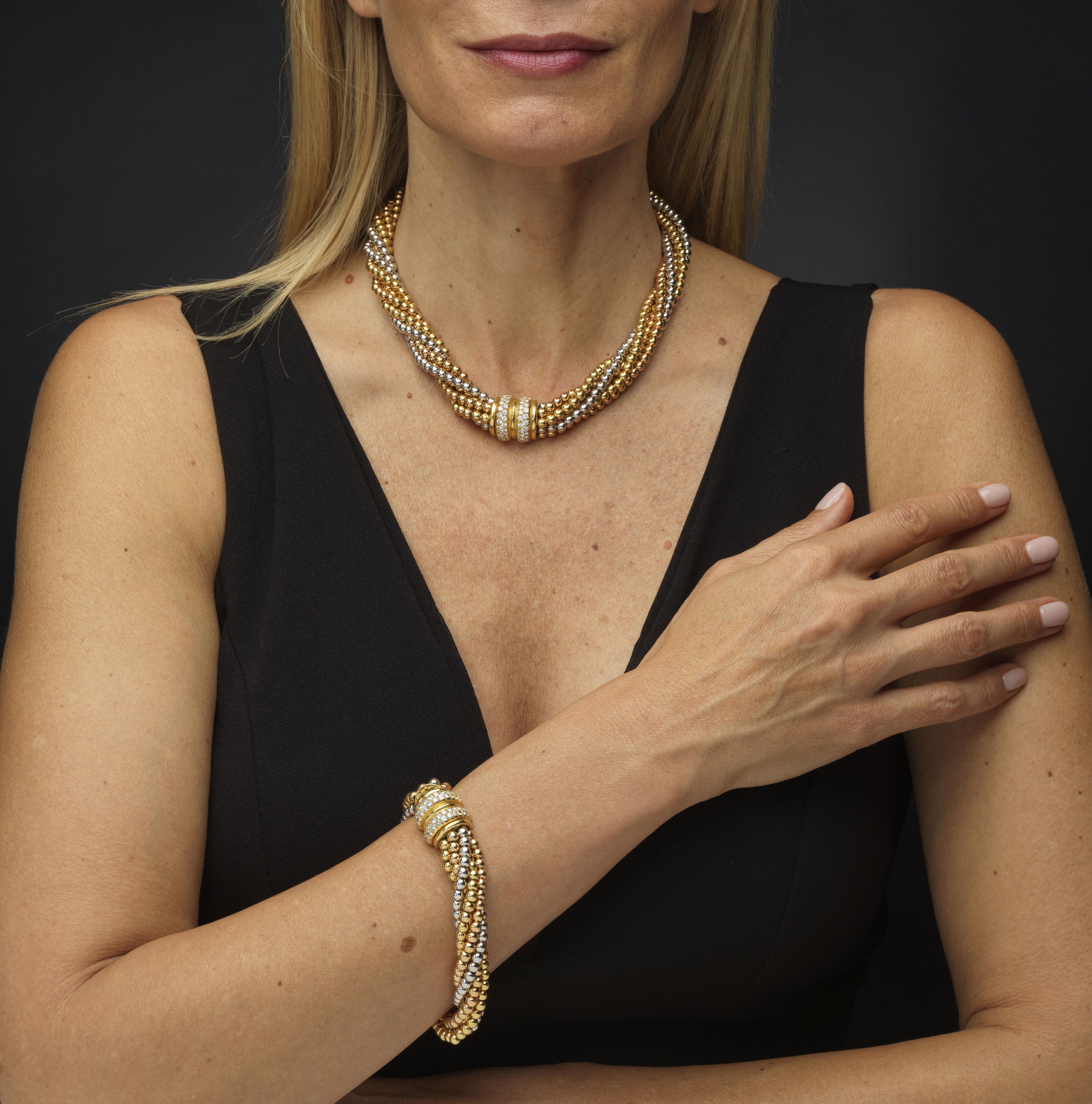 Terminé par un fermoir serti de diamants, or, or gris et or rose 750, L 41 cm, 84 g