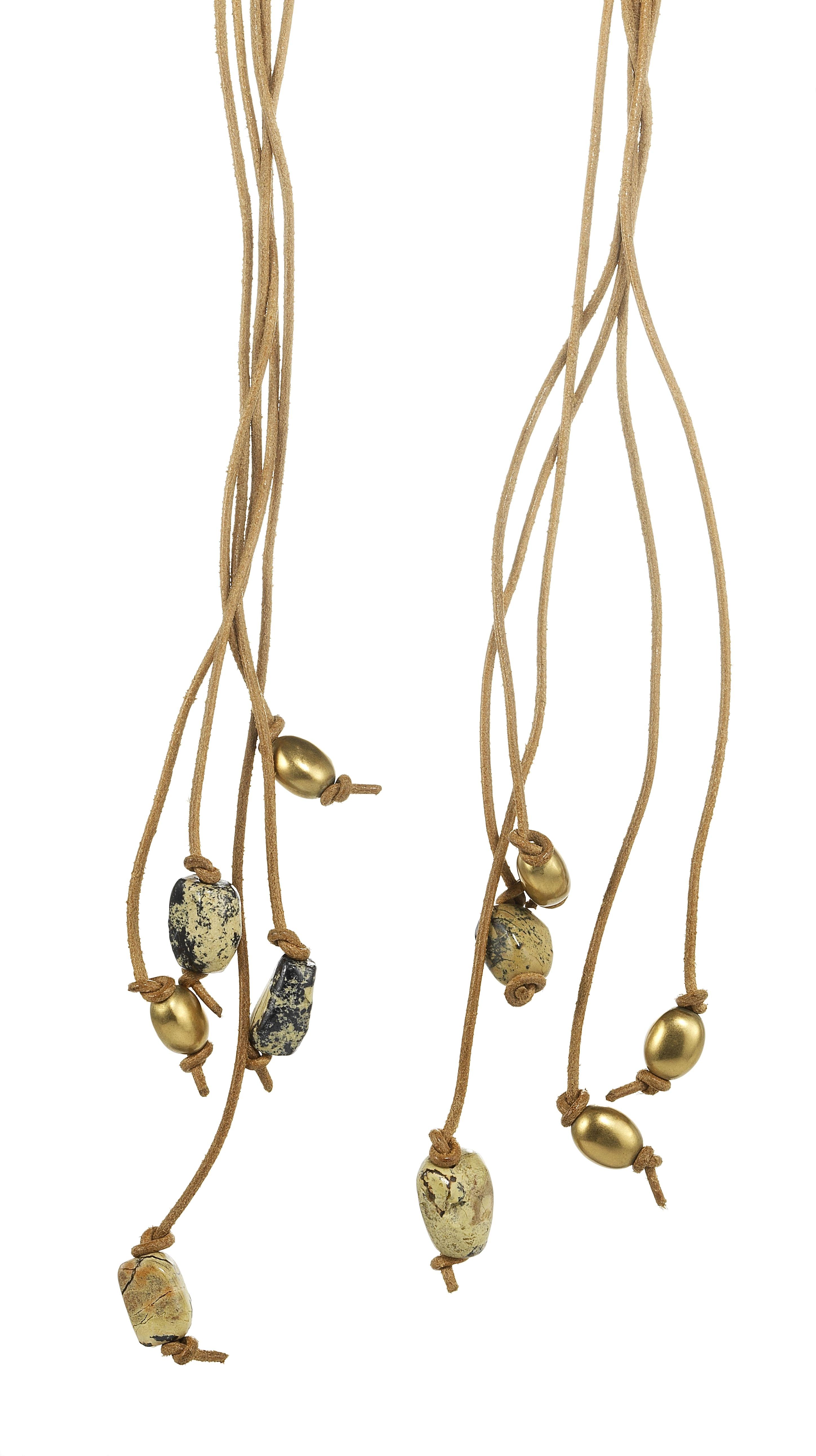 3133. Collier mutli-rangs sur cordons retenant en pampille des motifs en or et en nacre