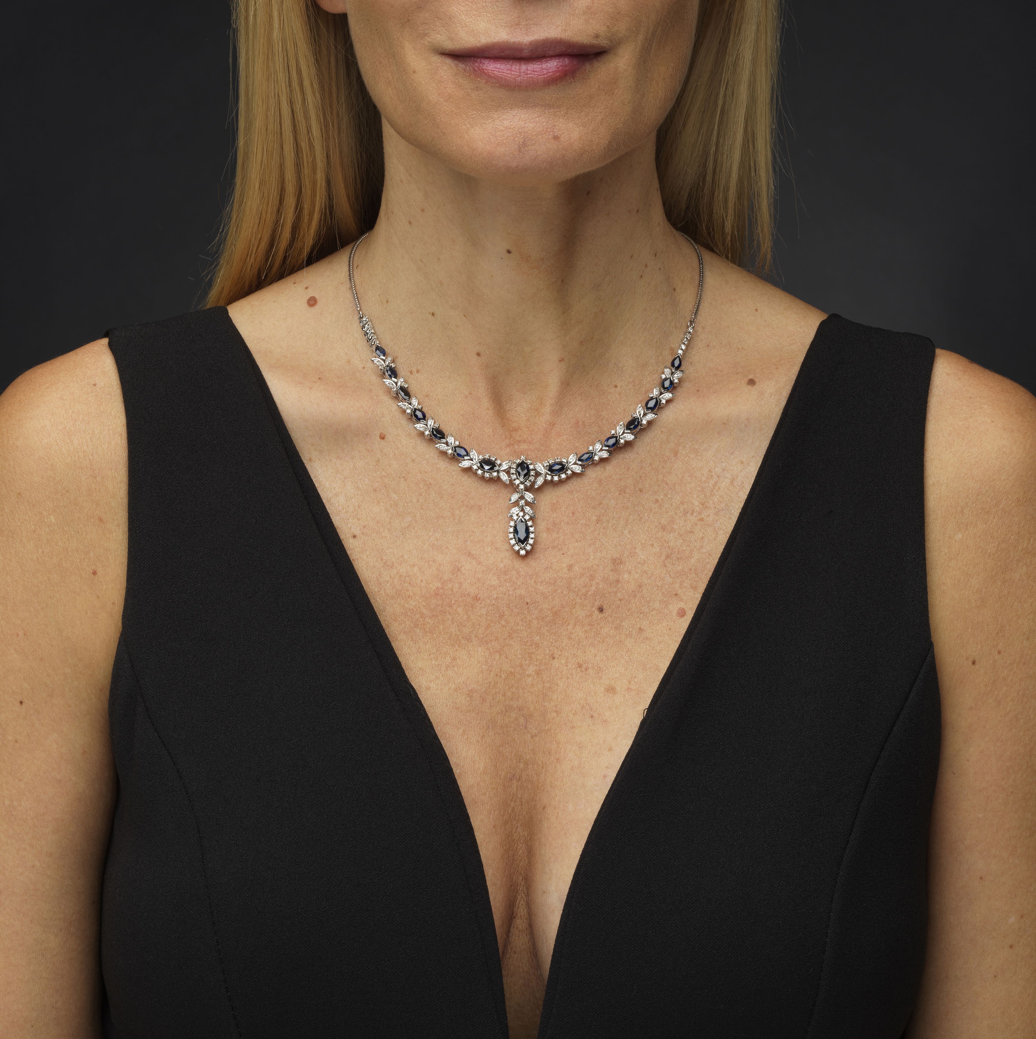 4605. Collier serti d'une ligne de saphirs taille marquise