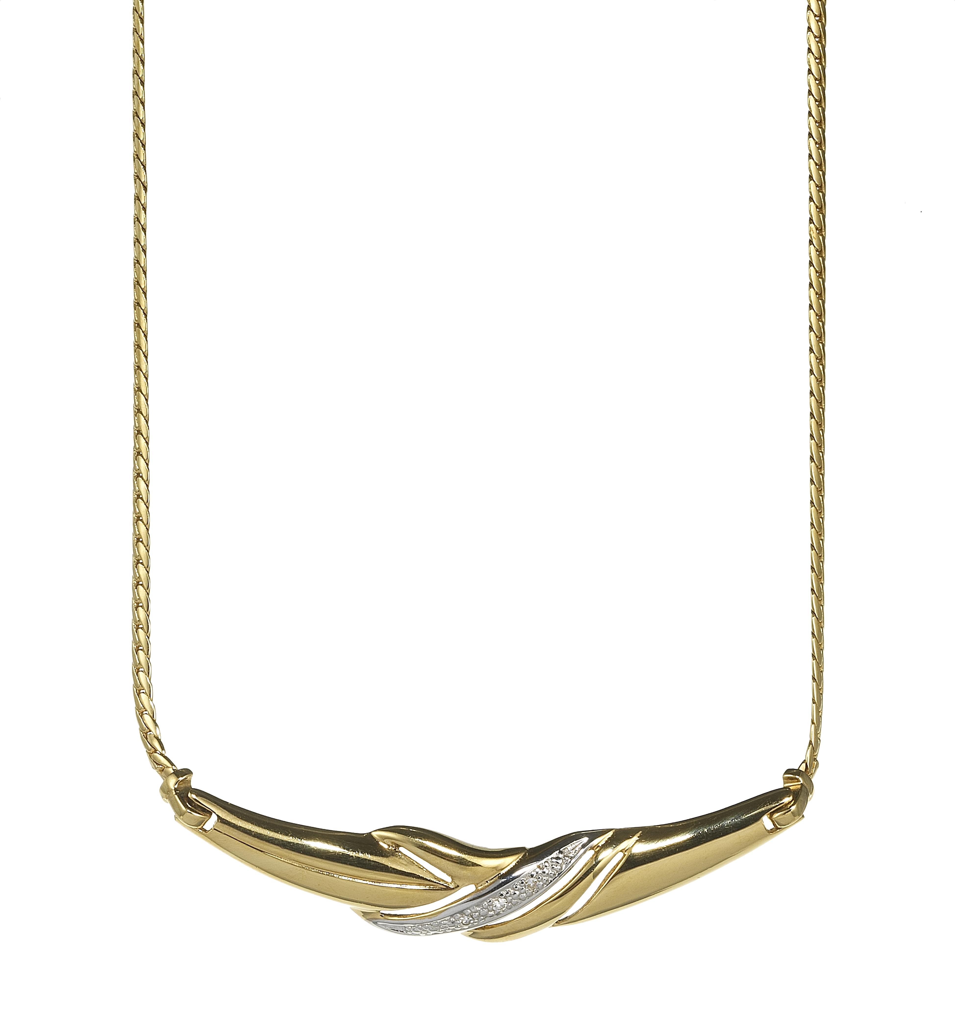 3265. Collier tour de cou à maille plate retenant un motif deux ors serti de petits diamants