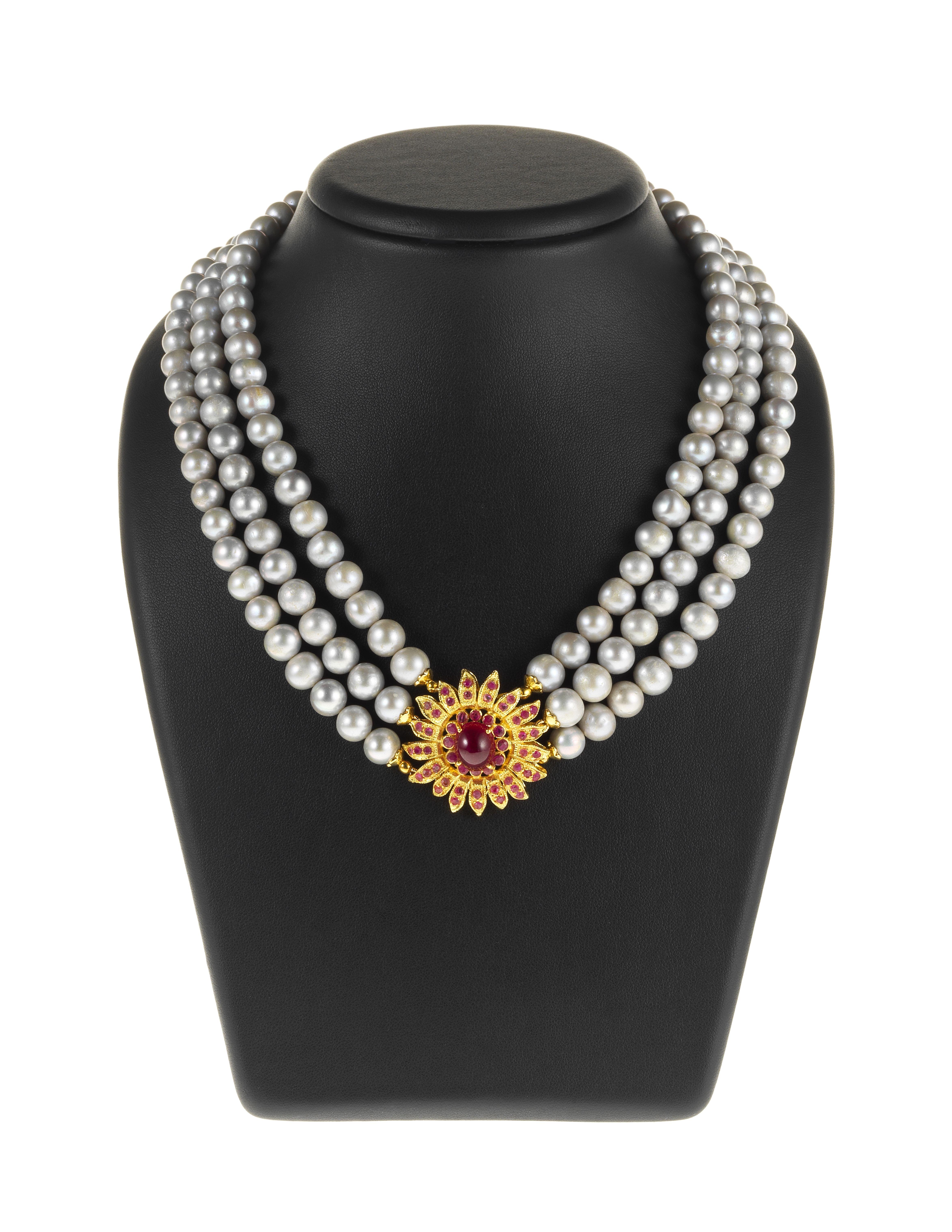 144. Collier composé de perles et de perlettes d'or en alternance ret...