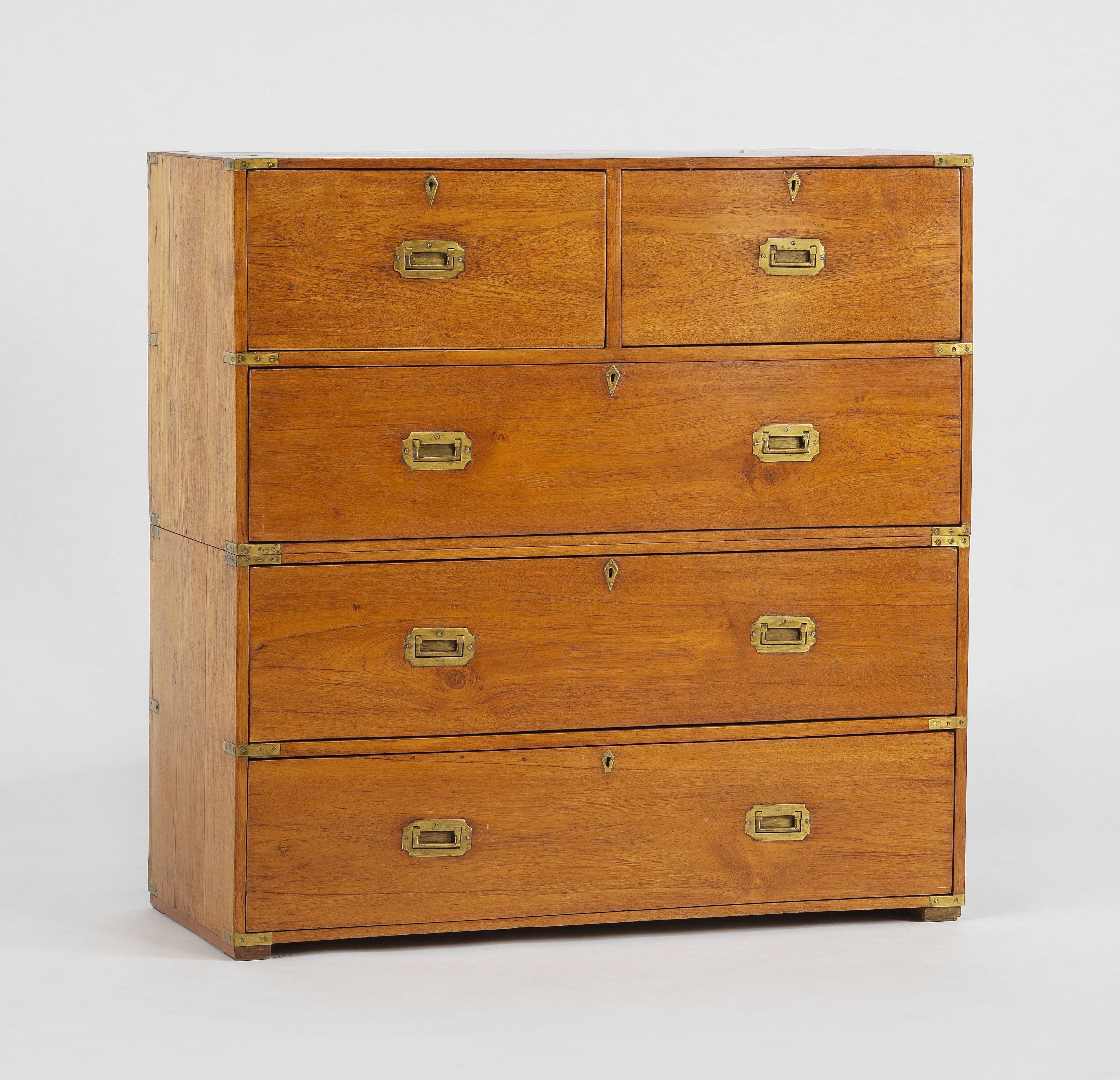 Cinq tiroirs, acajou et laiton, 102x101x45 cm. Provenance : collection Marisa Perret-Rezzonico