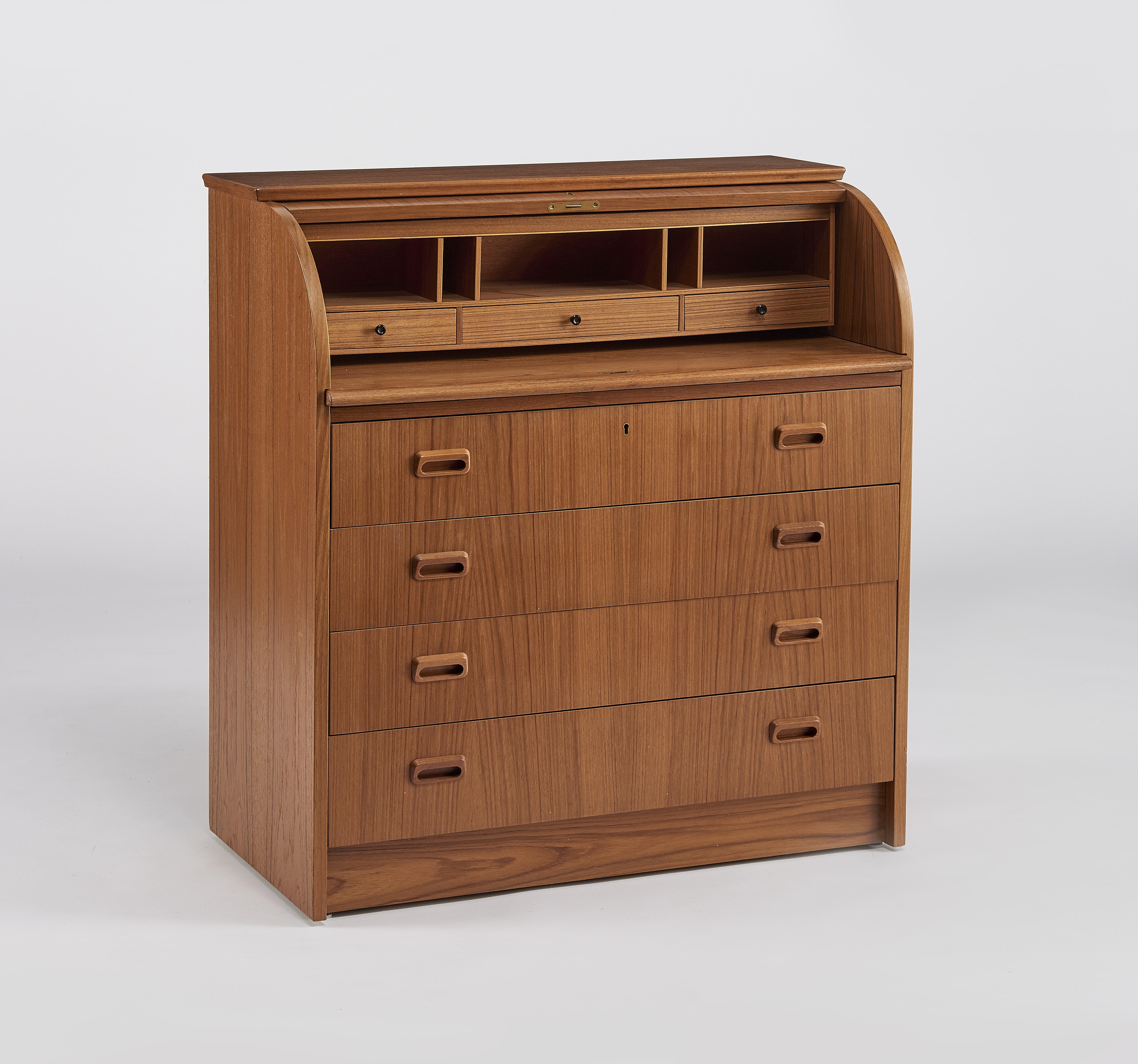Un cylindre, quatre tiroirs, teck, 98x90x46 cm