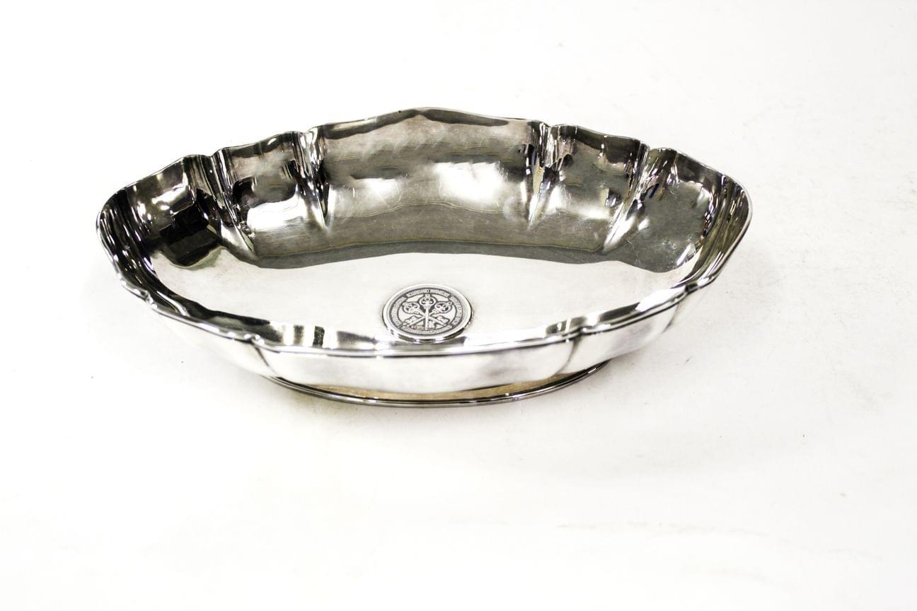 3319. Corbeille festonnée enchâssant une médaille de la Société de Banque Suisse