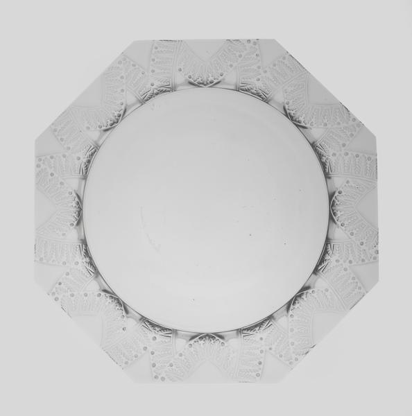 Verre blanc moulé-pressé et opalescent, D 27 cm