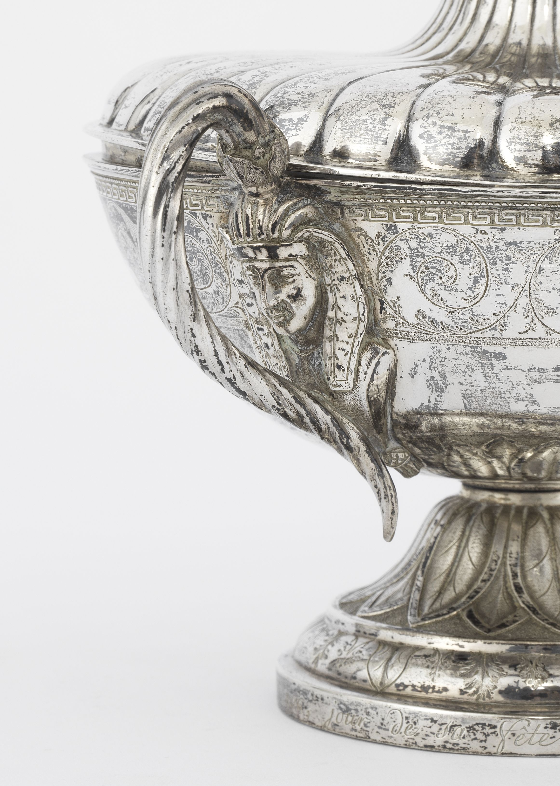 5420. Coupe couverte d'époque Empire à motif de godrons et prise perroquet