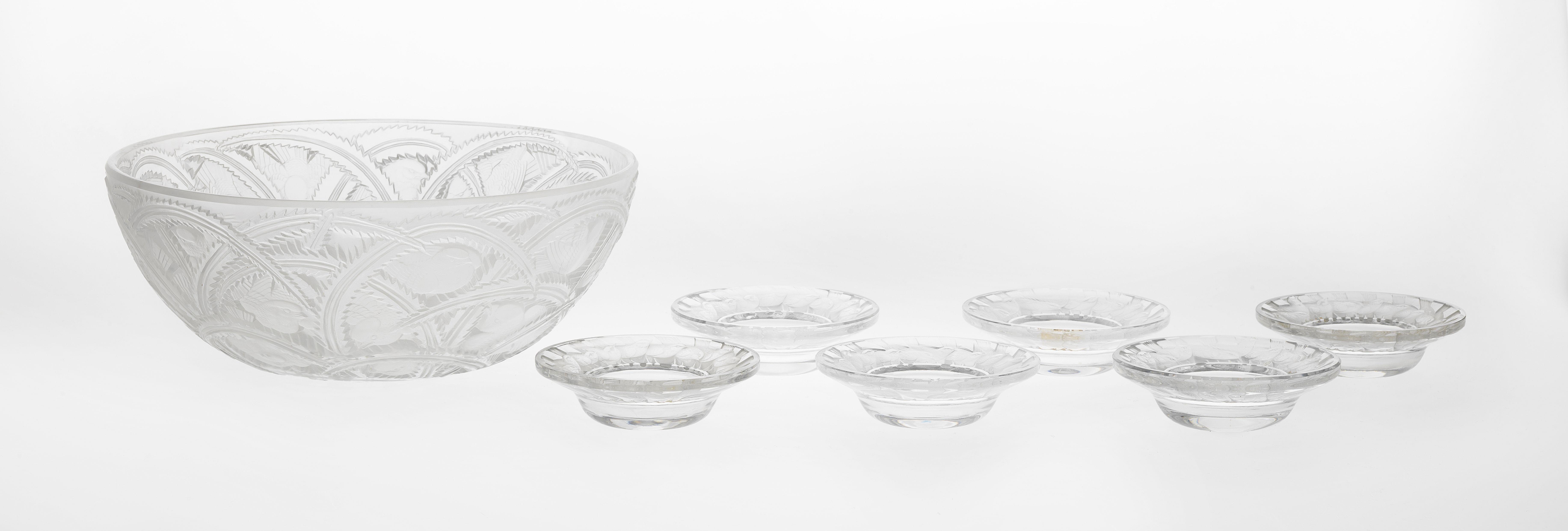 3093. Lalique, broche ronde en verre sculpté à décor de marguerites su...