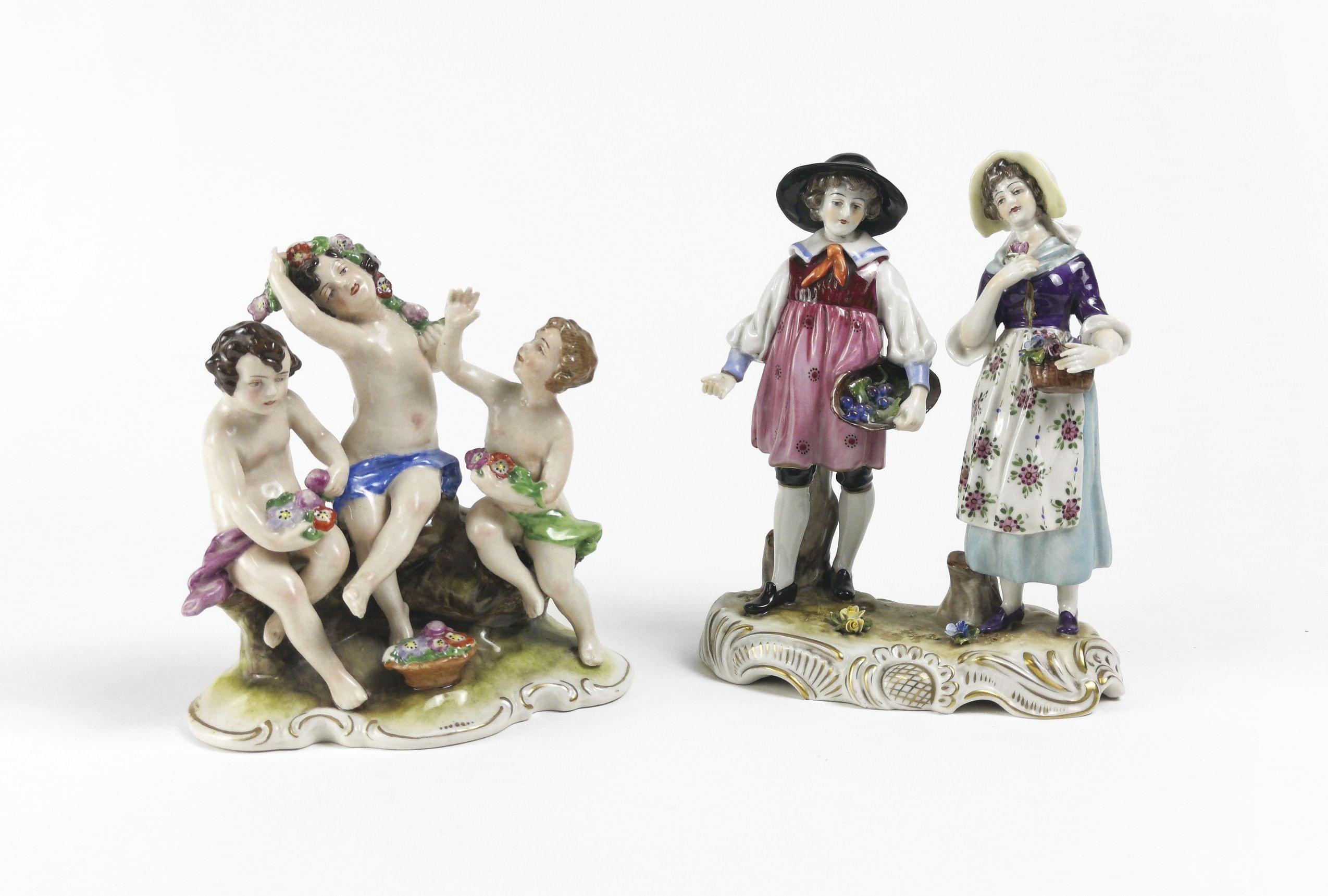 1010. Paire de flambeaux à pieds ornés de trois dauphins