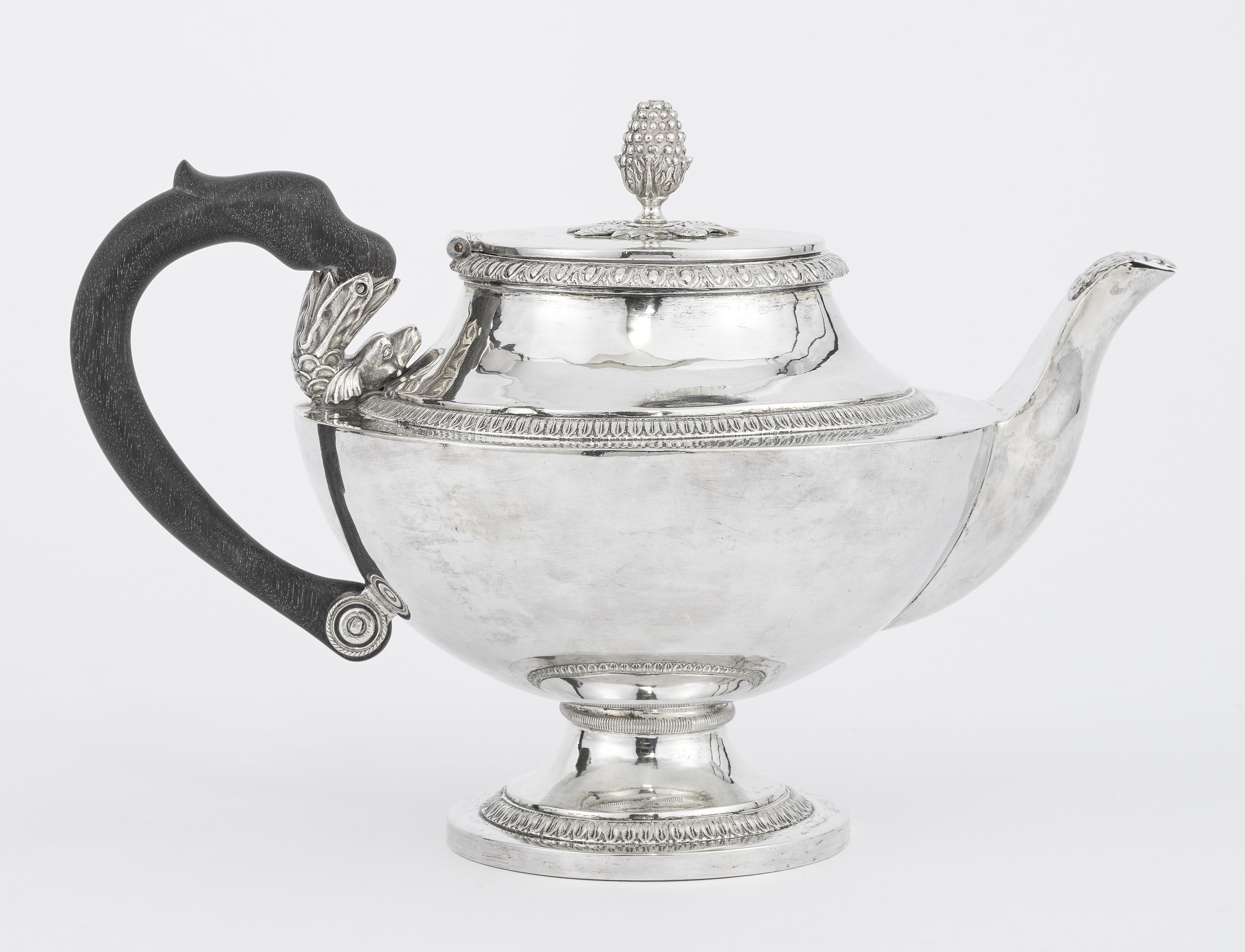 3695. Théière à décor de feuilles d'eau, anse dauphin et bec coquille