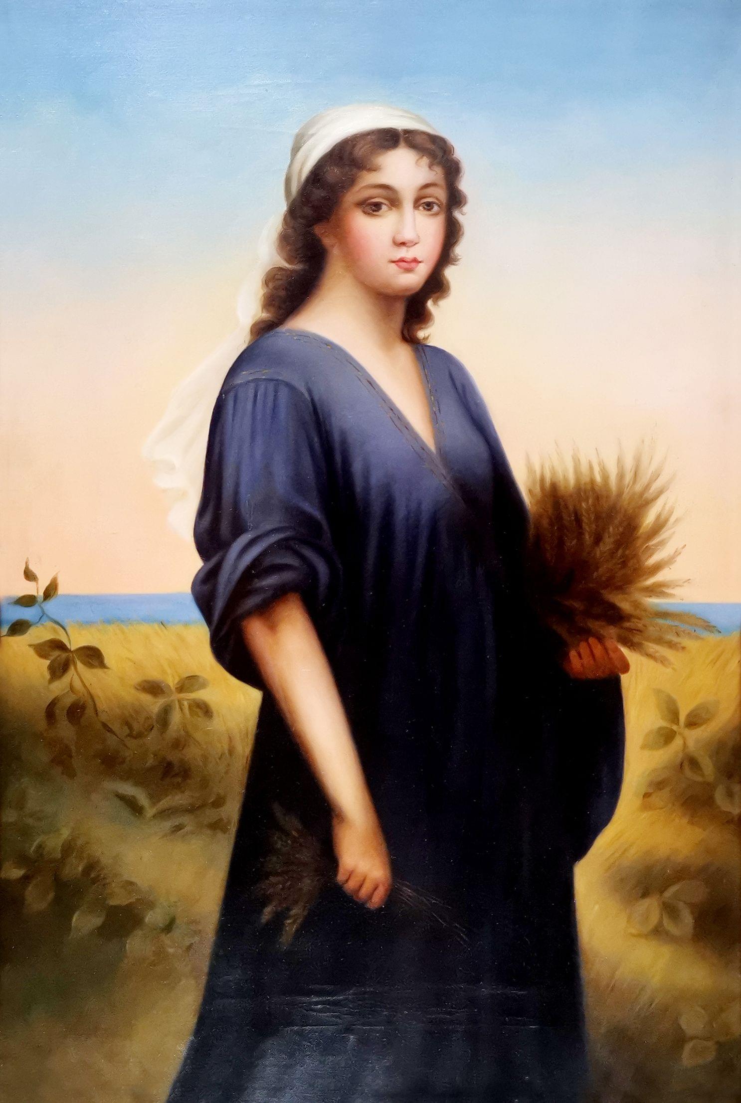 Jeune glaneuse, huile sur toile, attribuée et datée 1881 au dos, 84x56 cm