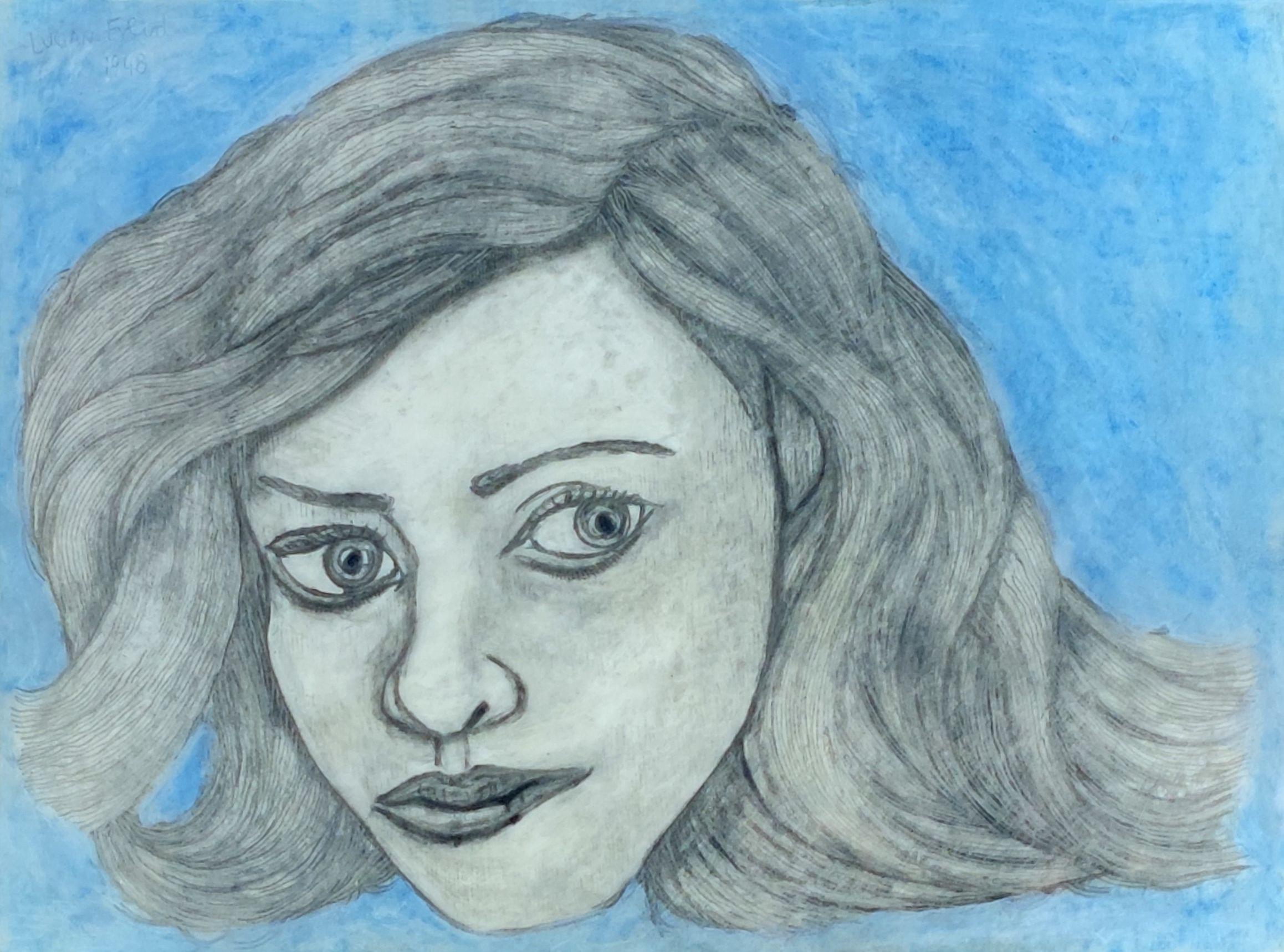 Visage de femme, crayon et gouache sur papier, 21,5x29 cm