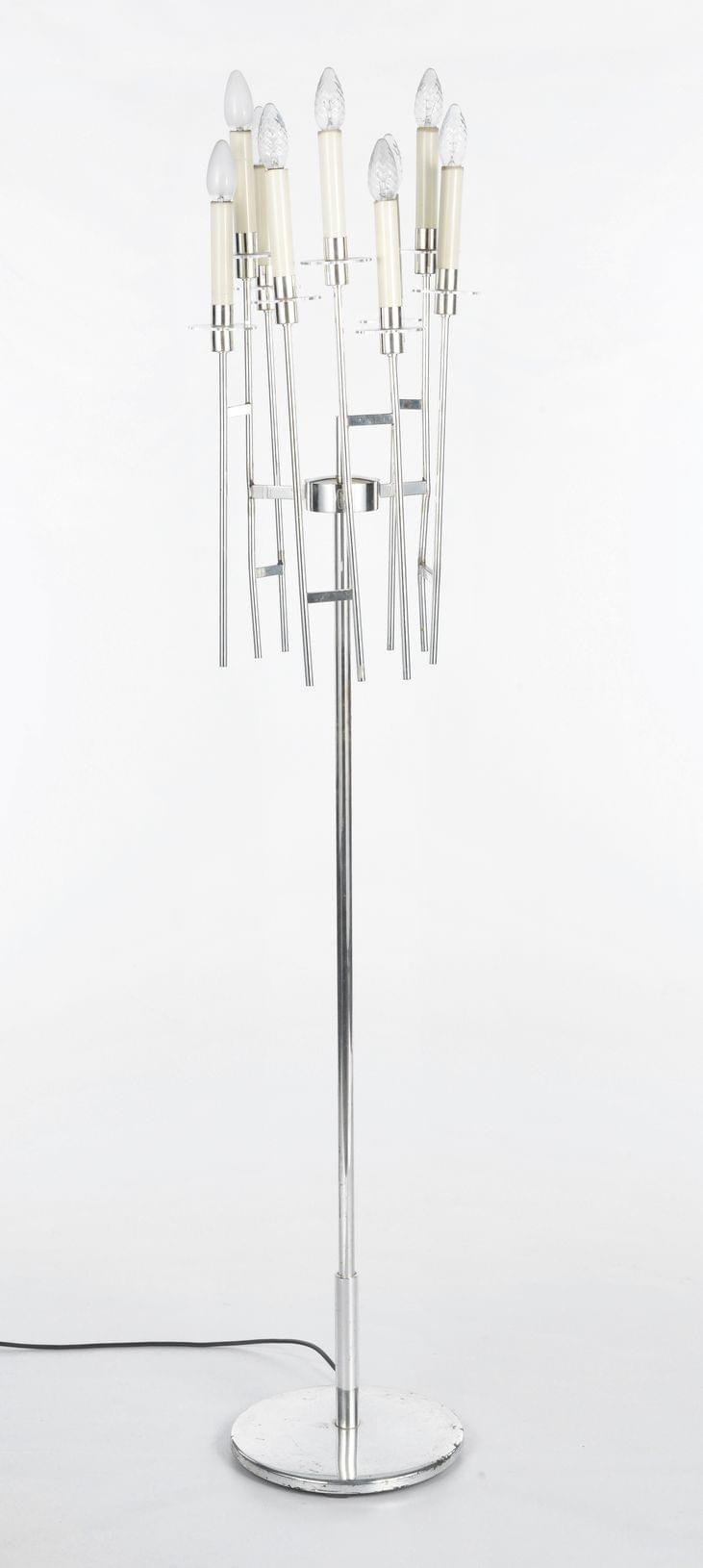 Lampe de parquet Design à 6 lumières, métal chromé, H 160 cm