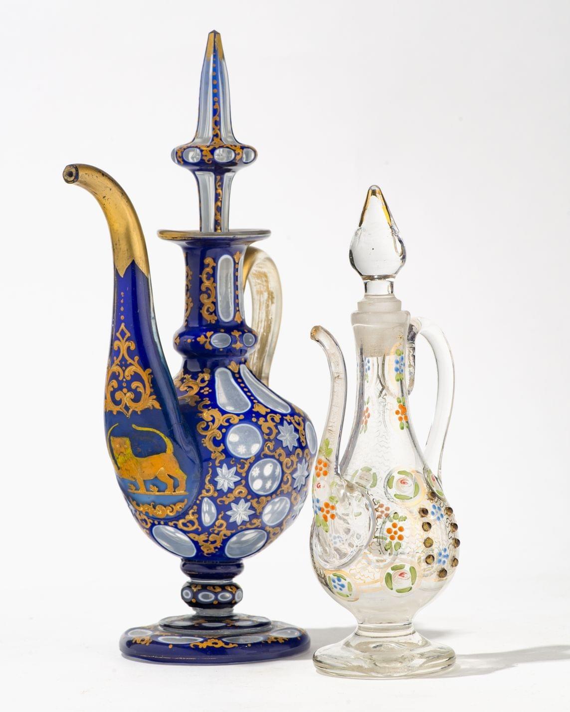 275. Broche sertie de diamants et de deux émeraudes en cabochon (env...