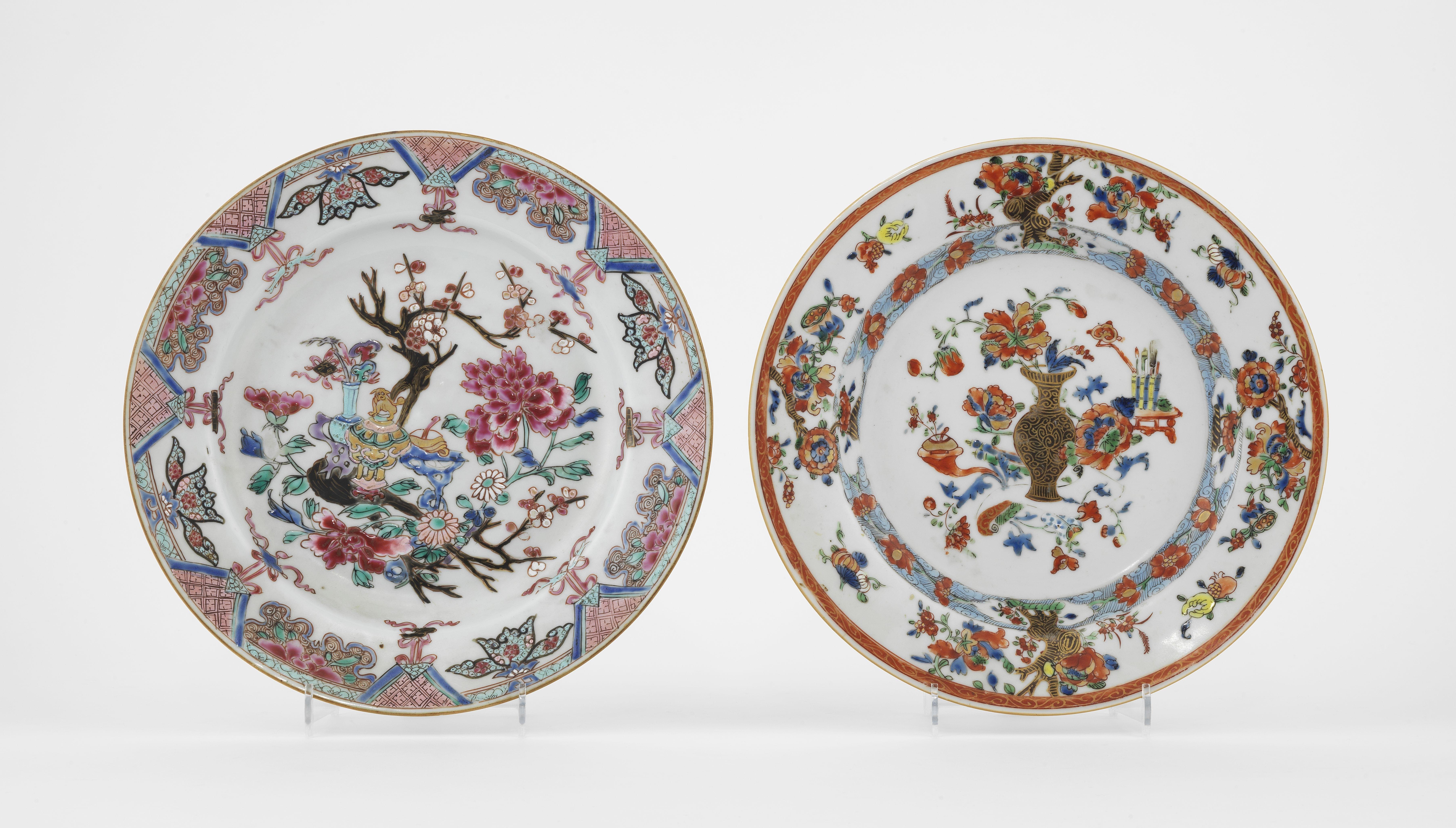 4616. Deux assiettes, l'une famille rose l'autre Imari, Chine XVIIIe s