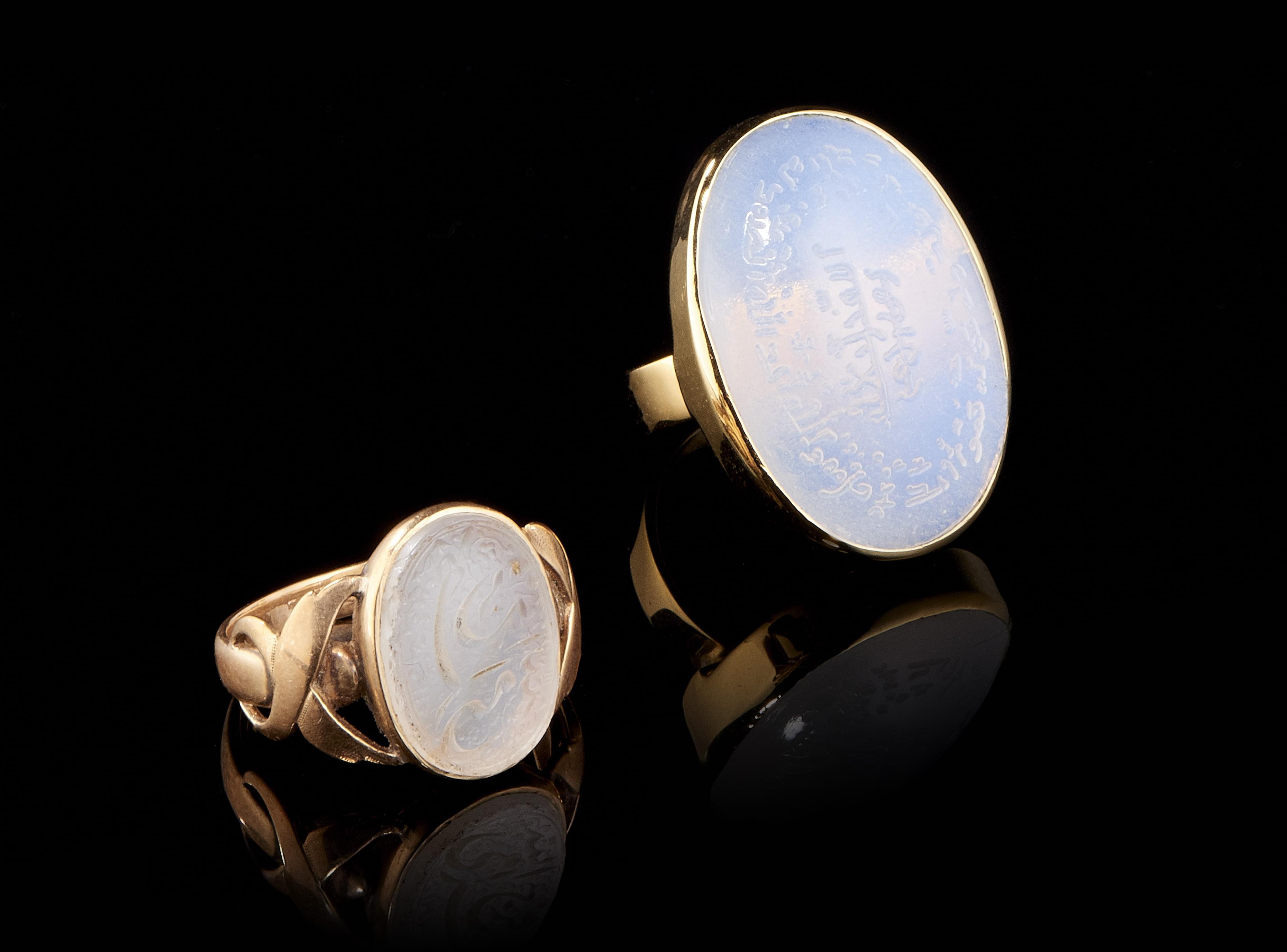 140. Deux bagues serties de calcédoines, Iran époque Qajar (1786–1925)