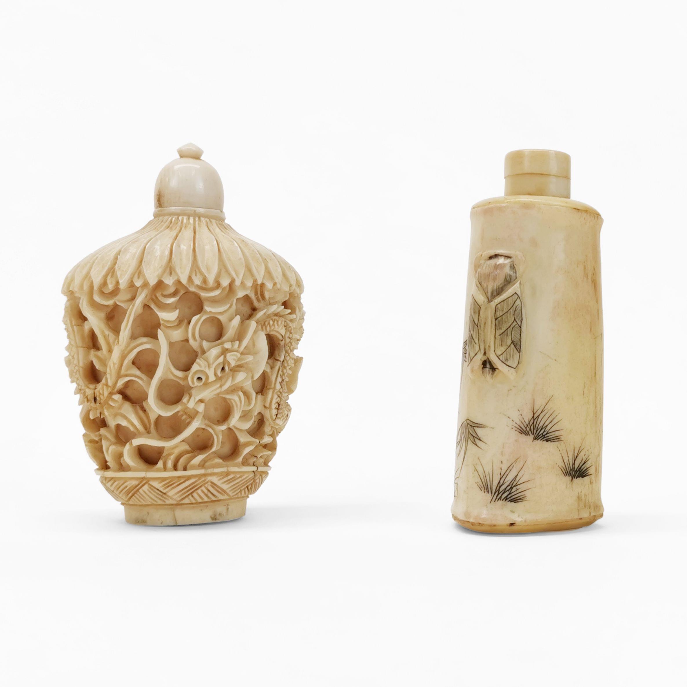 Ivoire et os, sculpté de dragons et cigales, H 7 cm