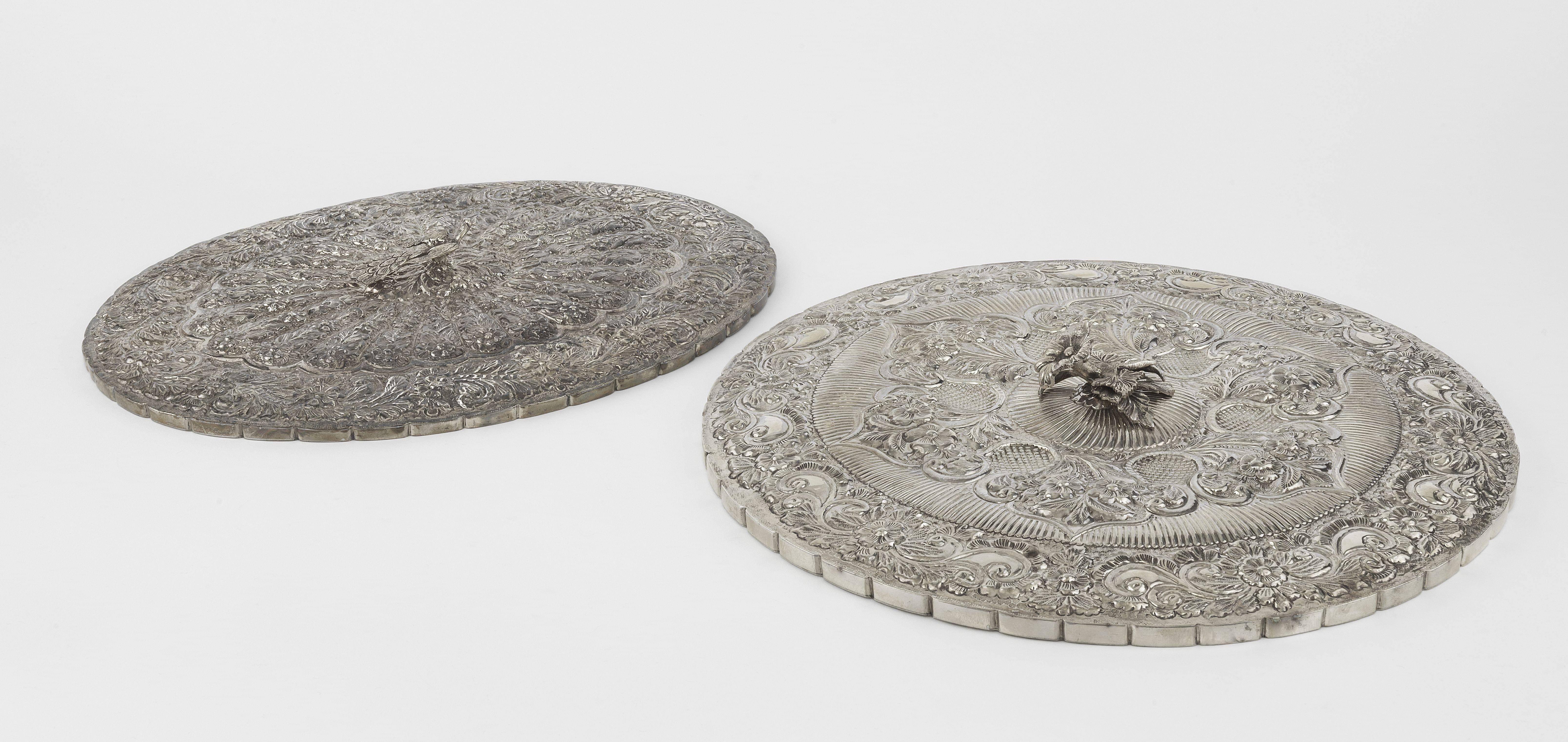 Monture en tôle d'argent repoussée, L et D 40 cm