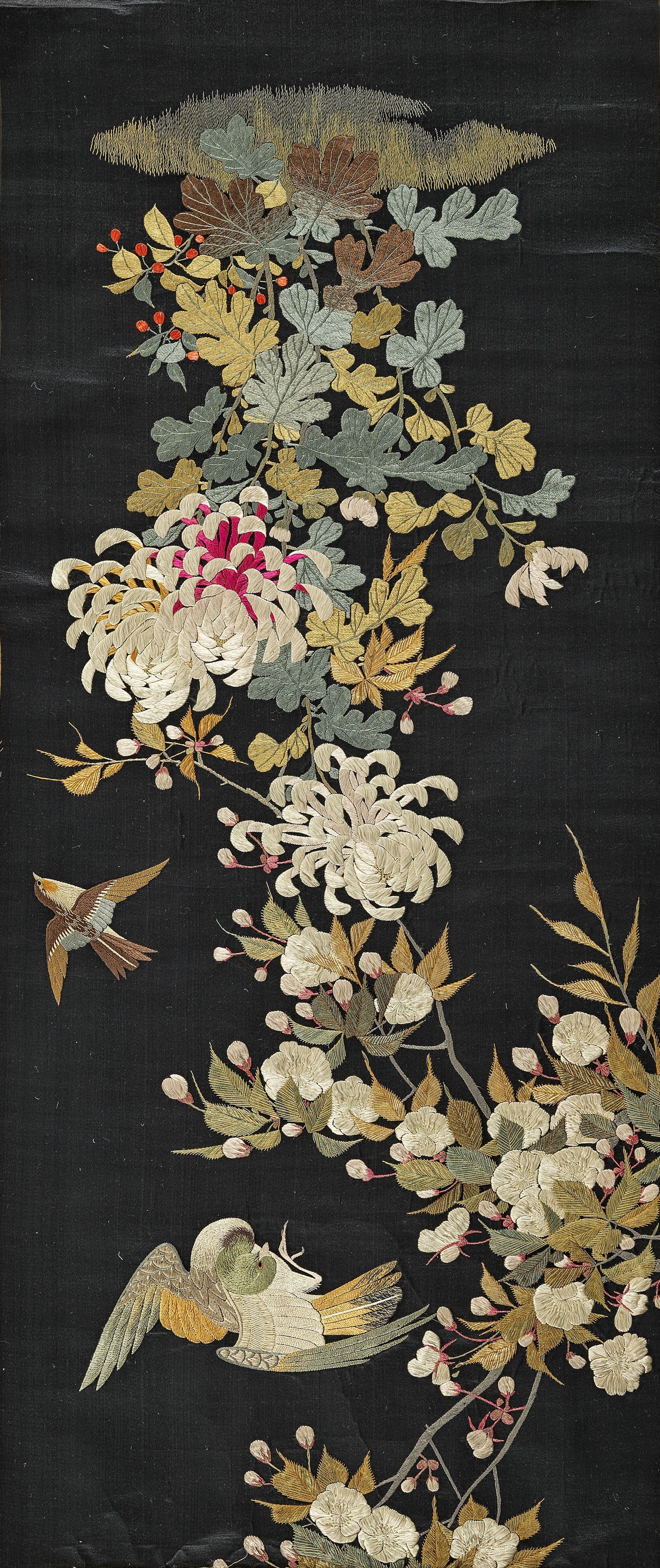 4484. Deux soies brodées, Chine ou Japon, circa 1900