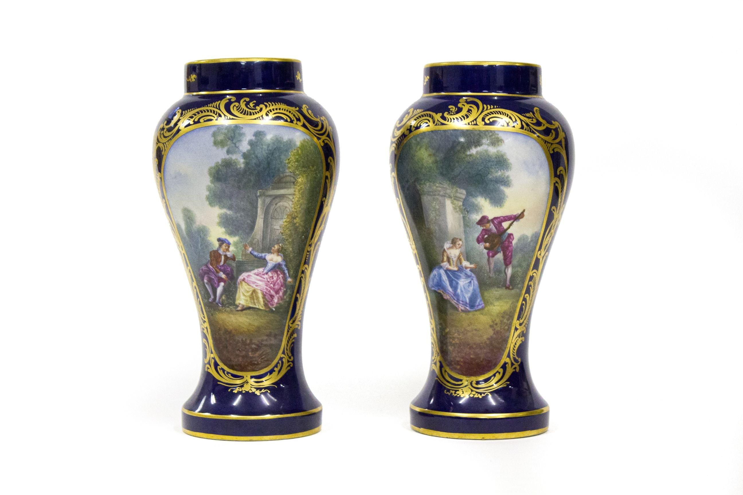 Cadrans émaillés blancs, aiguilles dorées, chiffres romains noir...