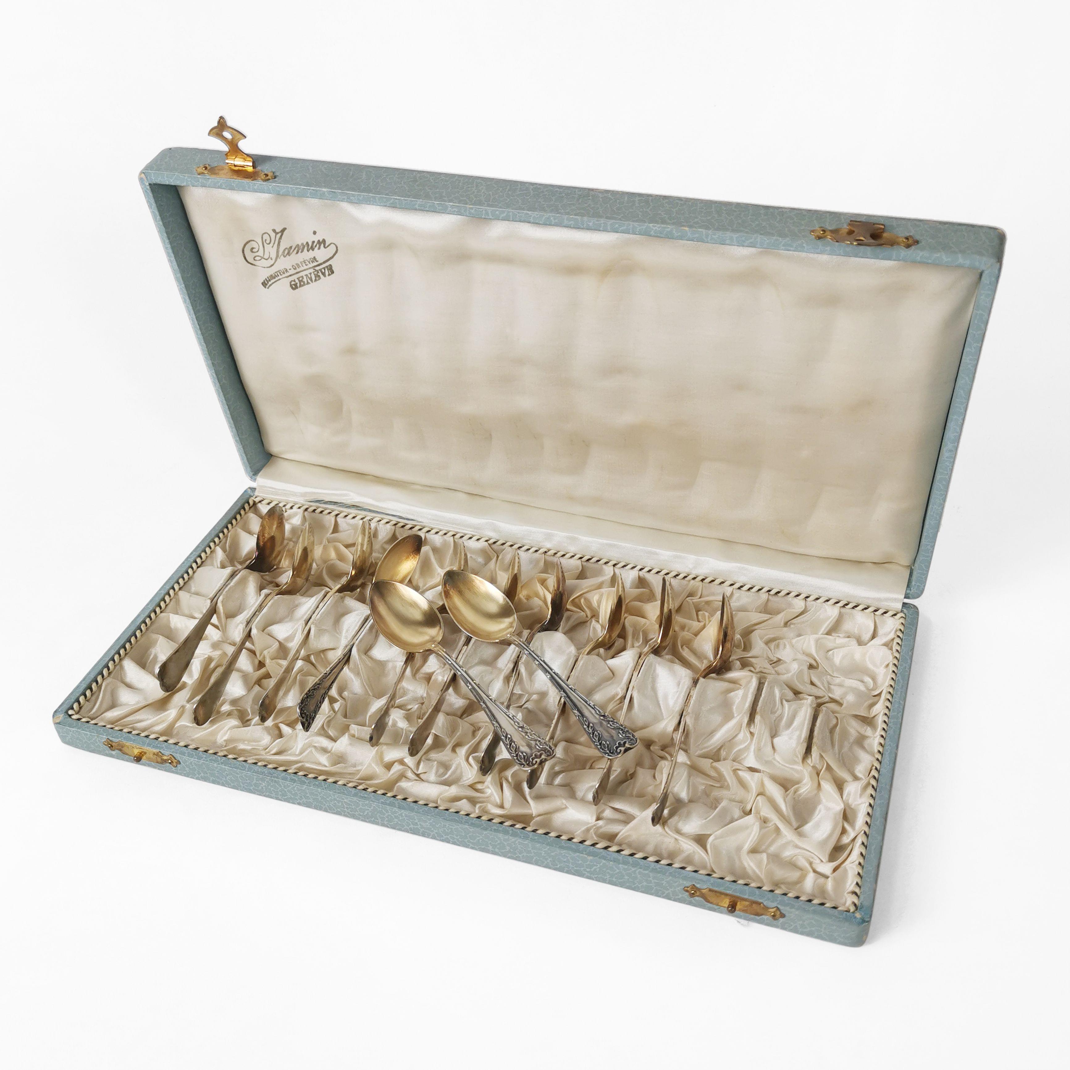 3806. Douze cuillères à thé à motif coquille, laurier et ruban croisé