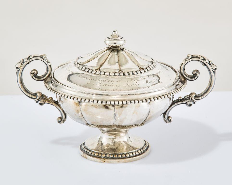 3321. Drageoir tripode néoclassique à décor de mascarons