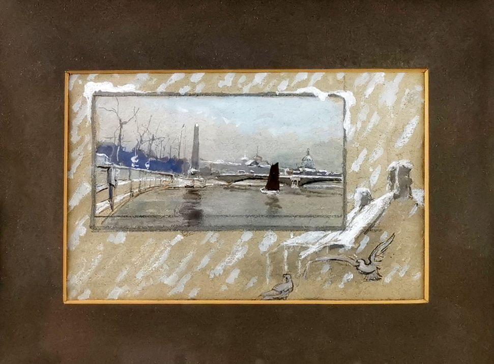 Deux vues de Londres, paire d'aquarelles et gouaches sur papier, 10x17 cm